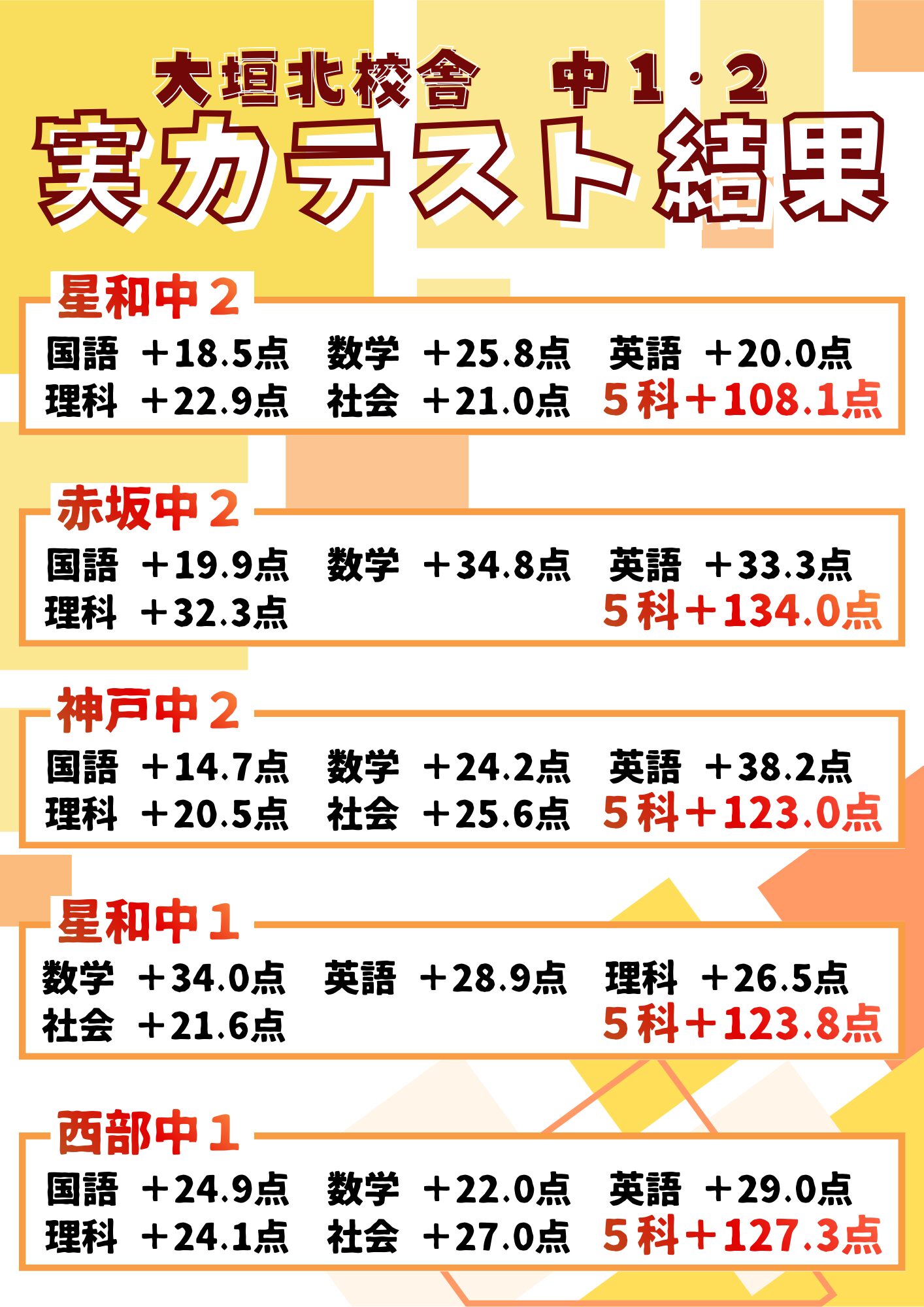 2026 中1・2実力テスト結果