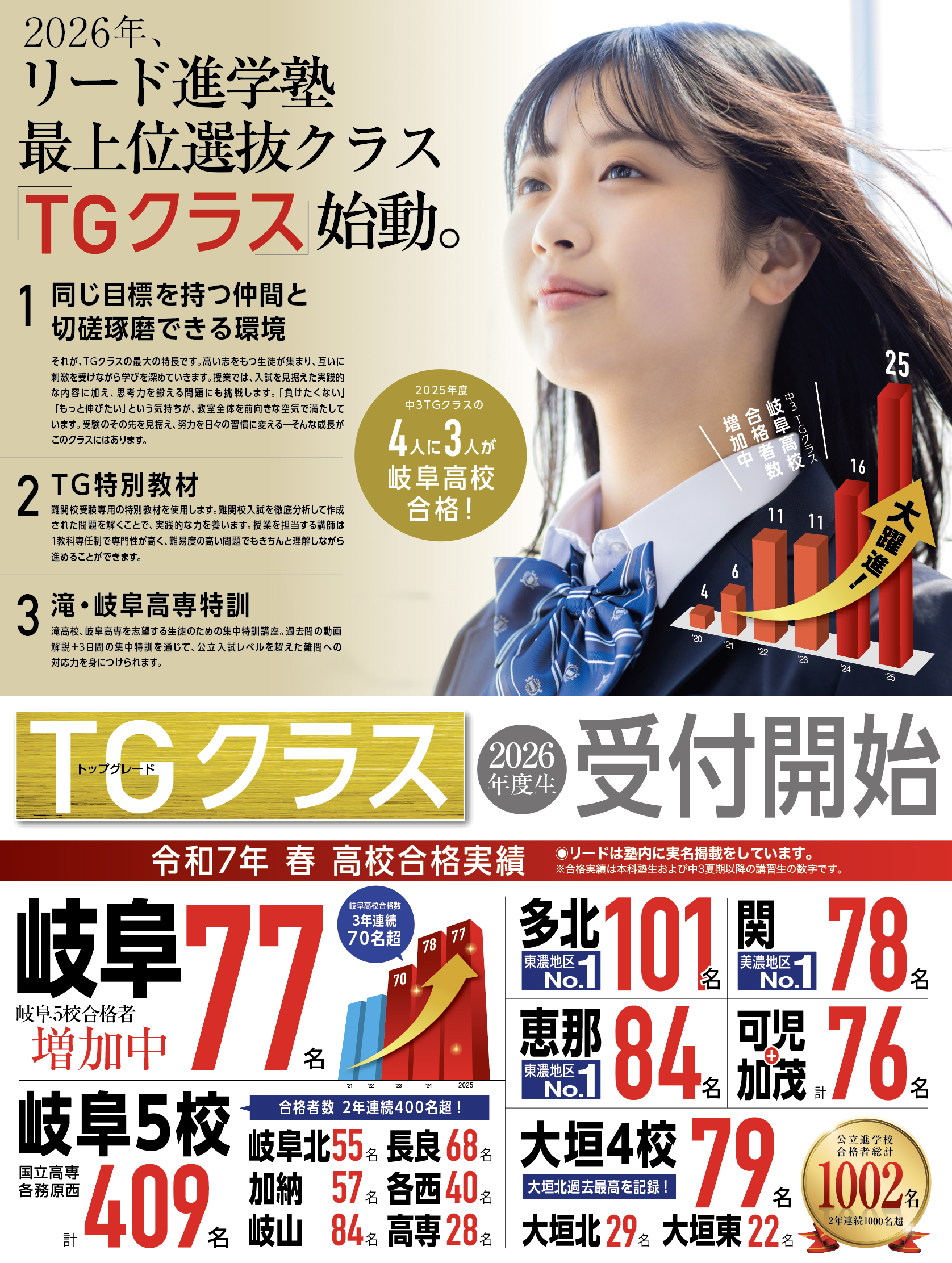 リード進学塾、リード予備校は岐阜県の多治見市・土岐市・瑞浪市・恵那市・中津川市・可児市・ 美濃加茂市・関市・各務原市・岐阜市・羽島市・大垣市、愛知県の江南市・春日井市において校舎を展開。 幼・小・中・高一貫指導で、能力開発から学校のテスト対策、高校受験、大学受験まで幅広い教育サービスを地域密着で行っている学習塾です。 幼児から小学生対象のキッズ向け能力開発コースでは、「楽しみながら身につく習い事を!」という理念のもとネイティブによる英会話教室・算数パズル・思考力育成・読書・速読聴・理科実験教室・ゲームプログラミング・ロボットプログラミング・早期英語4技能習得・そろばん教室など、様々な能力開発プログラムを用意しています。 小・中学部(リード進学塾)では、1教科専任のプロ講師による5教科完全指導を実施。普通の学力のお子さまを鍛えて伸ばし、岐阜5校(岐阜高校・岐阜北高校・加納高校・岐山高校・長良高校)、 各務原西高校・関高校・可児高校・加茂高校・多治見北高校・多治見高校・恵那高校など岐阜県のトップ校や愛知県のトップ校合格を可能にする学力を養成します。東濃地区・可茂地区・美濃地区ではNo.1の合格実績を誇ります。 高等部(リード予備校)では、各高校の「専門館」としてターゲット校を絞ることで無理、無駄のない手厚い指導を行います。高校生の様々なニーズに合わせ、集団指導、個別指導、キャリア教育など多様なコースを設定。高校の定期考査対策・ベネッセ総合学力テスト対策・小論文対策・推薦入試対策・大学入学共通テスト対策など生徒に最適な指導を行い、東京大学・京都大学・名古屋大学などの難関国公立大学・私立大学へ現役合格が可能な学力を養成します。大学受験のプロによる的確な進路指導、親身なカウンセリングの他、無料で利用できる自習室などサポート環境も充実しています。また河合塾マナビスやウイングネットも導入し、大学入学共通テストにも完全対応したカリキュラムをお届けします。