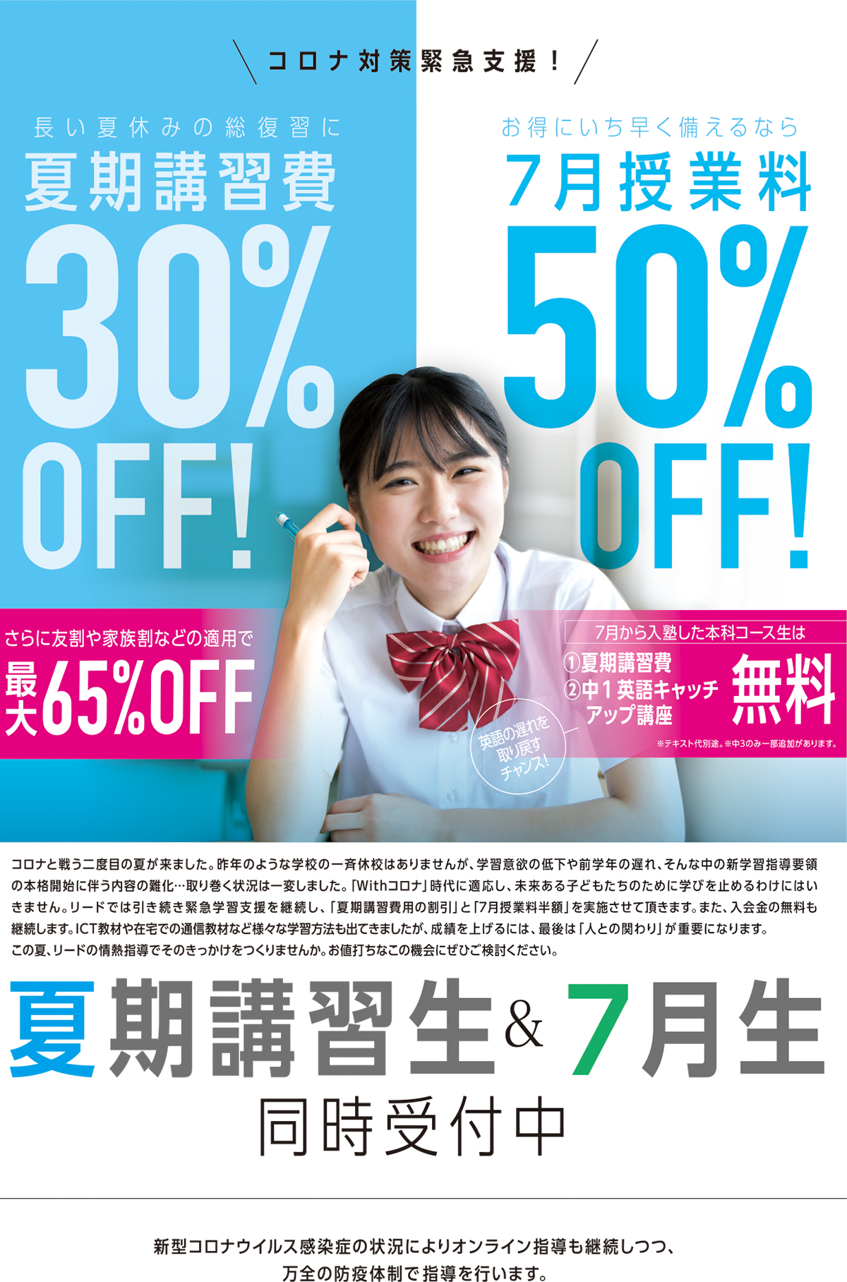 リードでは現在、7月入塾&夏期講習生を募集中です。