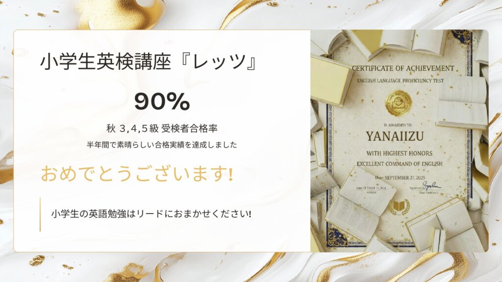 柳津校舎の秋英検・小学生受検者の合格実績です!