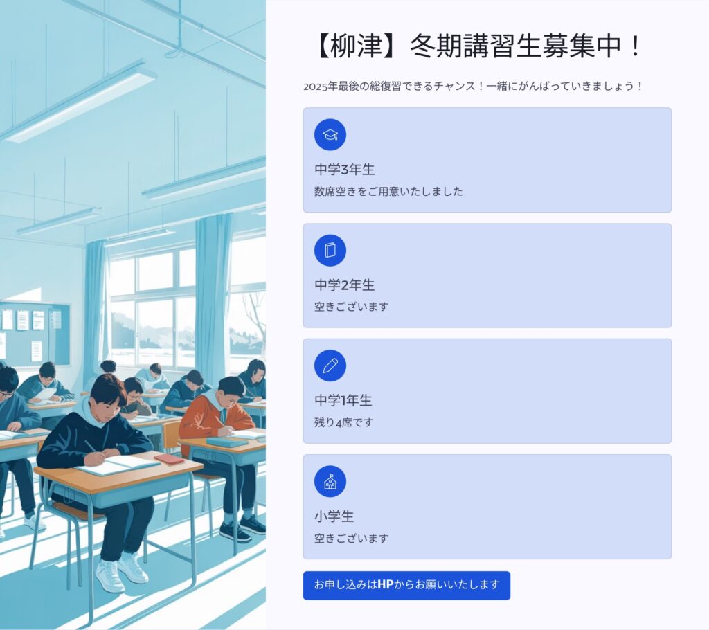 もちろん今日の日曜自習室も、13:00開校と同時に満席です!
