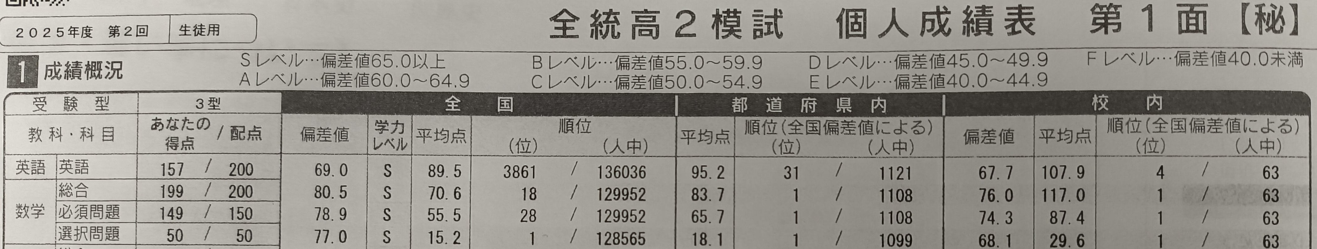 個人的には、模試結果に「満点者の人数」も記載してくれると面白いなと思います。