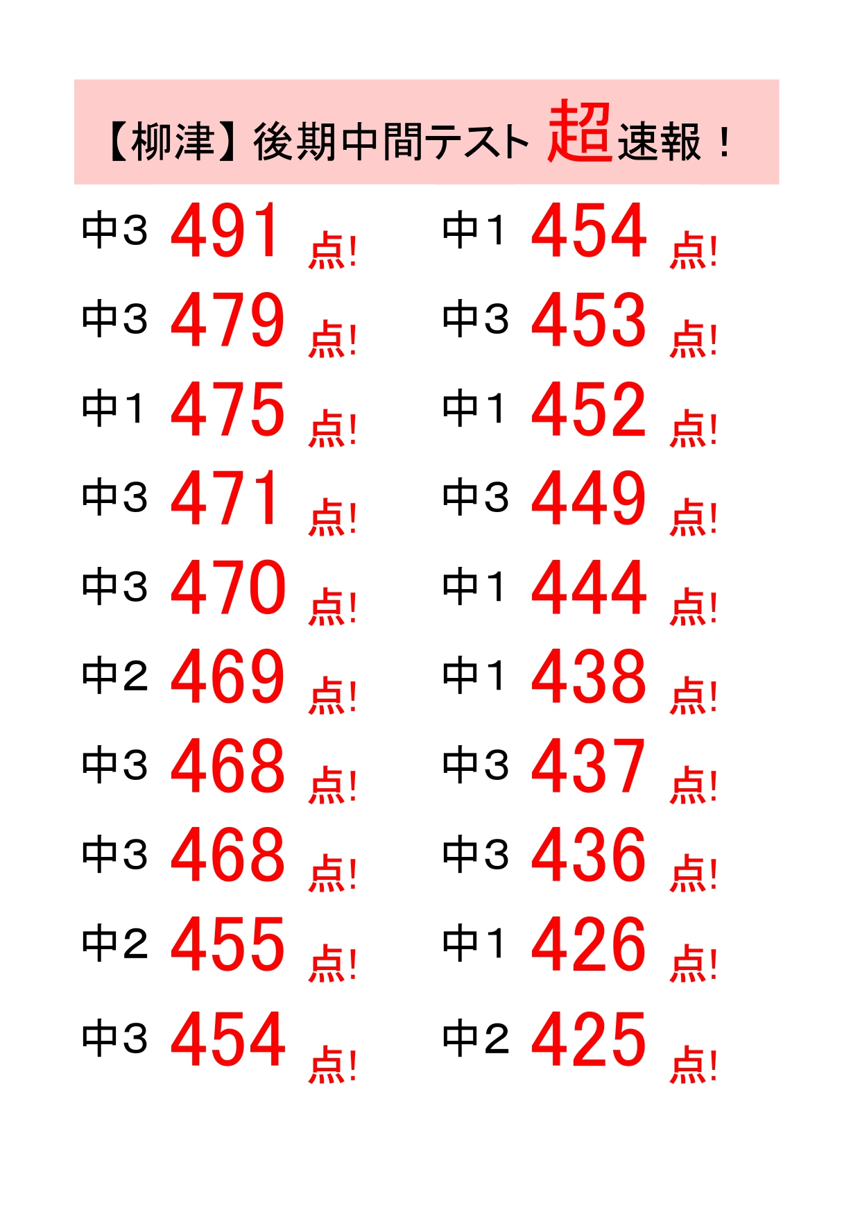 最高得点は474点(中1)!頑張りました!