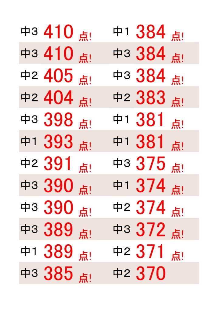 これだけたくさんの生徒さんが高得点を取ってくださっていると思うととても素晴らしいことだと思います!!