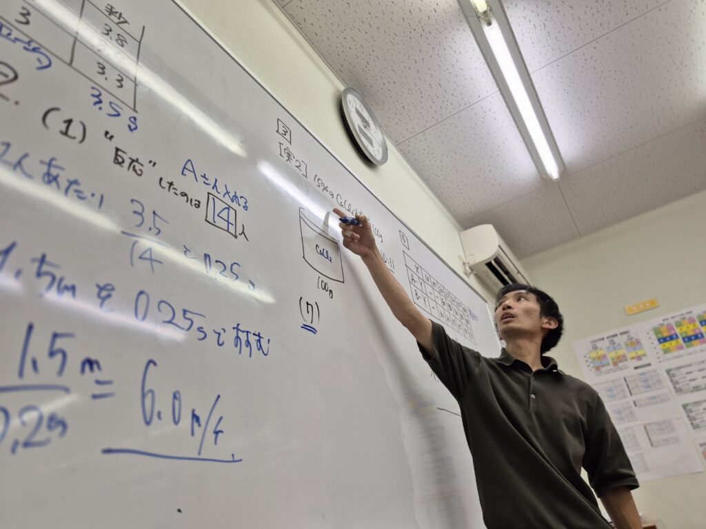数学の栗本先生は、自分の休み時間に生徒さんを呼んでフォローアップ授業しています!