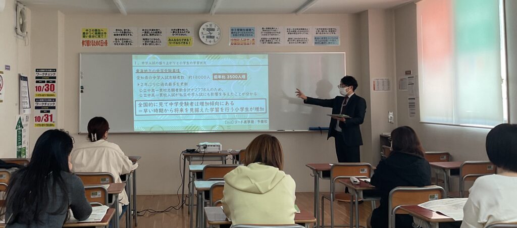 テストと同時刻に保護者様対象のセミナー「多様化する大学入試から逆算する小学生学習戦略」を実施いたしました。