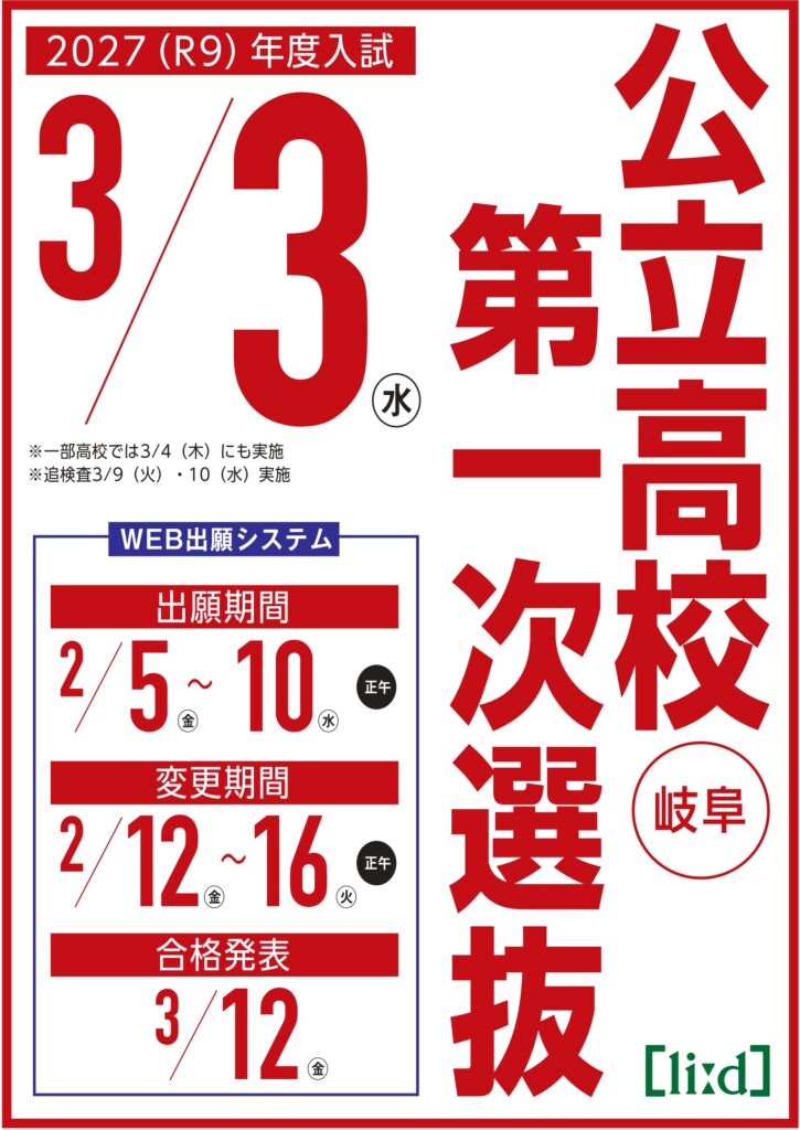 岐阜県 令和9年度 公立高等学校入学者選抜 日程