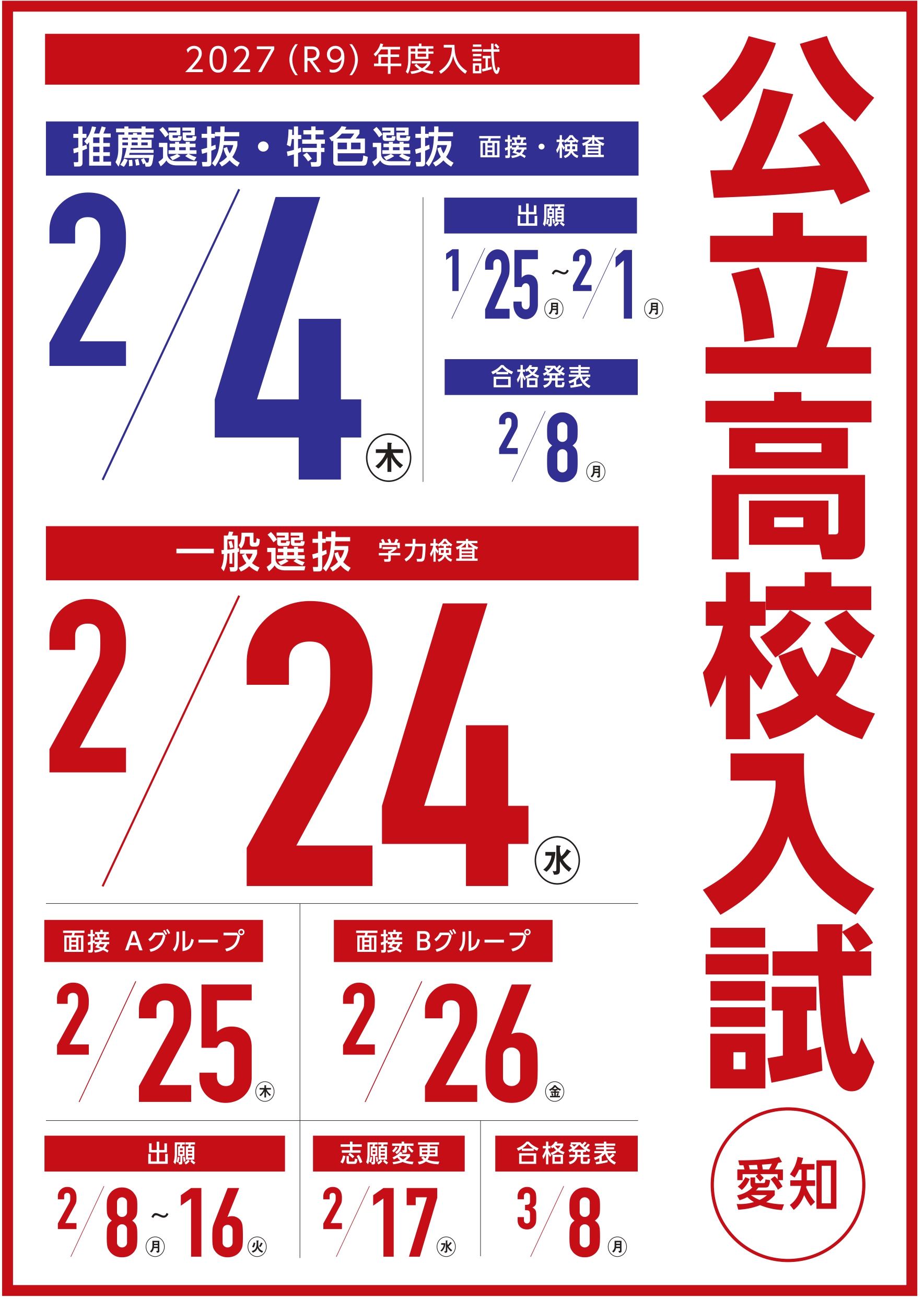 令和9年度愛知県公立高等学校入学者選抜実施日程について