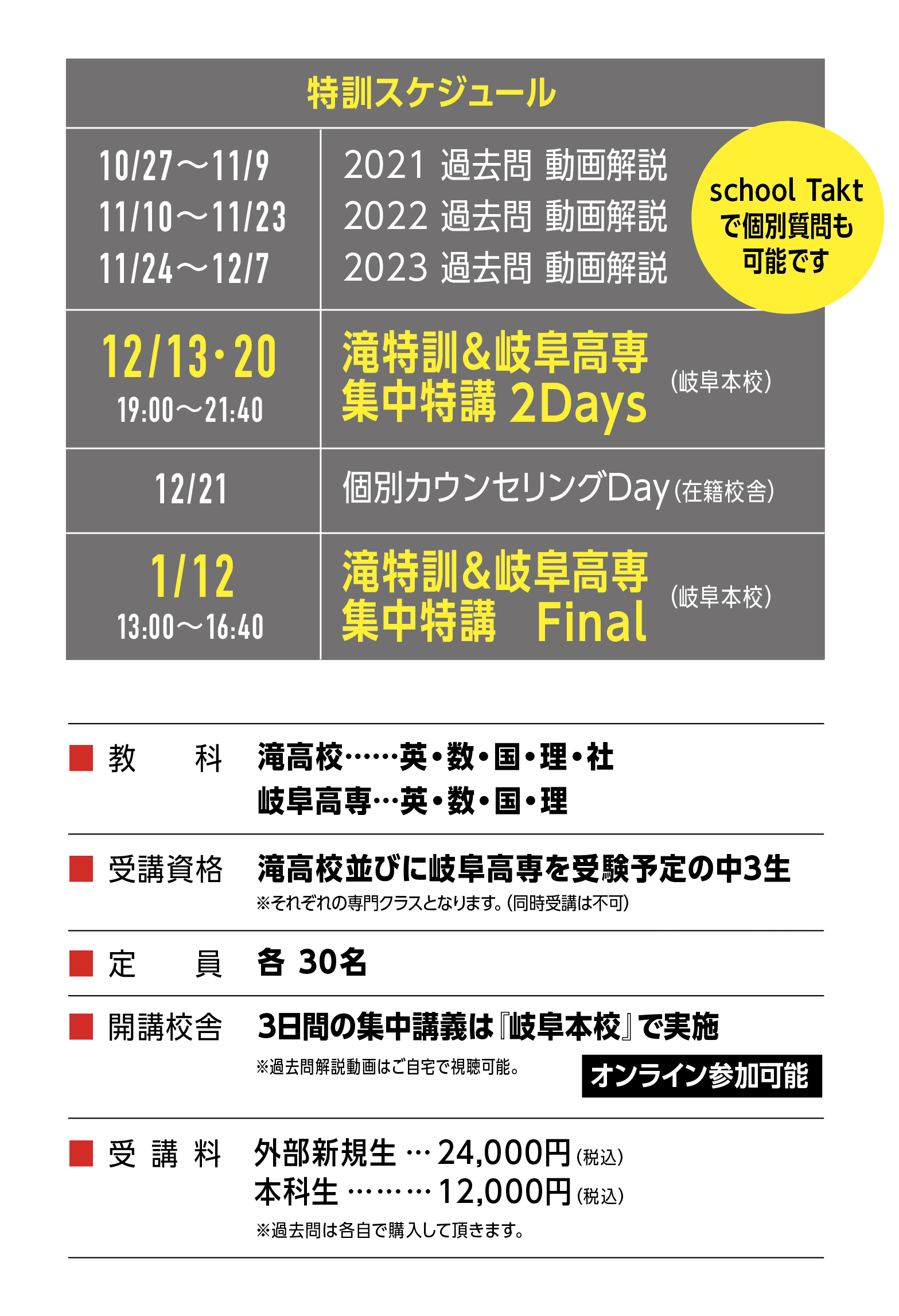 リード進学塾は幼・小・中・高一貫教育で子どもたちの輝かしい未来を応援します。 HOME 幼・小学部 中学部 高等部 合格実績 小中学部ブログ 高等部ブログ 校舎案内 受験情報 最新情報 HOME 幼・小学部 中学部 高等部 合格実績 小中学部ブログ 高等部ブログ 校舎案内 受験情報 HOME > 最新情報 > 滝高校・岐阜高専特訓受付スタート 滝高校・岐阜高専特訓受付スタート 前へ 次へ 一覧へ 前へ 次へ 一覧へ 詳しく知りたい方はコチラから! リード進学塾/予備校について リード進学塾/予備校 資料請求について リード進学塾/予備校 体験授業について リード進学塾/予備校 お問い合わせについて
