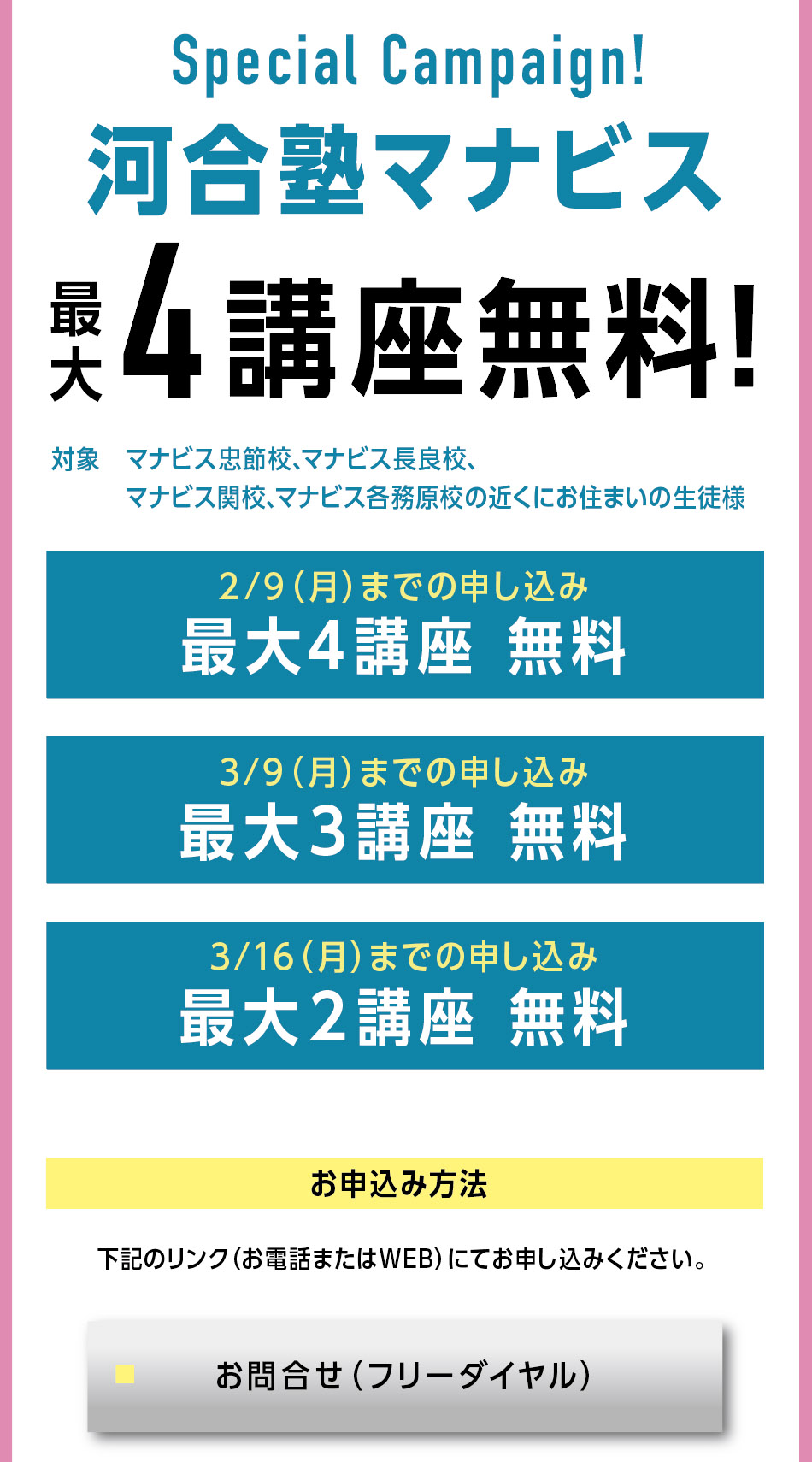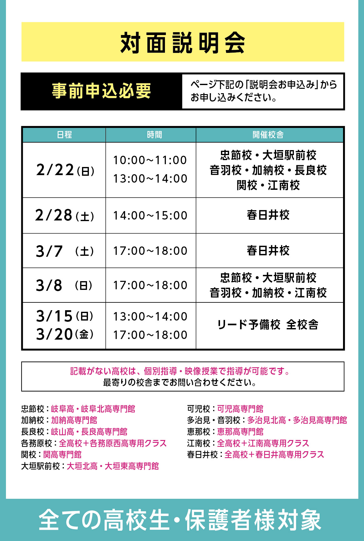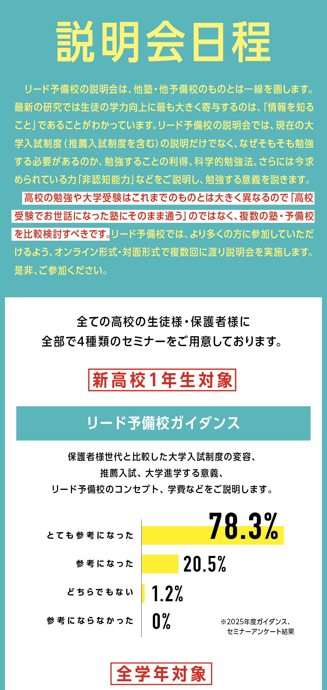 リード進学塾は幼・小・中・高一貫教育で子どもたちの輝かしい未来を応援します。 HOME 幼・小学部 中学部 高等部 合格実績 小中学部ブログ 高等部ブログ 校舎案内 受験情報 最新情報 HOME 幼・小学部 中学部 高等部 合格実績 小中学部ブログ 高等部ブログ 校舎案内 受験情報 HOME > 最新情報 > 高等部 高校準備&春期生受付中 高等部 高校準備&春期生受付中 前へ 次へ 一覧へ 前へ 次へ 一覧へ 詳しく知りたい方はコチラから! リード進学塾/予備校について リード進学塾/予備校 資料請求について リード進学塾/予備校 体験授業について リード進学塾/予備校 お問い合わせについて