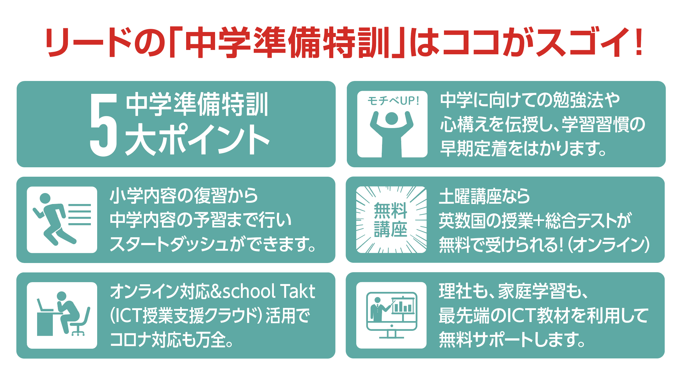 リード進学塾は幼・小・中・高一貫教育で子どもたちの輝かしい未来を応援します。 HOME 幼・小学部 中学部 高等部 合格実績 小中学部ブログ 高等部ブログ 校舎案内 受験情報 最新情報 HOME 幼・小学部 中学部 高等部 合格実績 小中学部ブログ 高等部ブログ 校舎案内 受験情報 HOME > 最新情報 > 中学校入学準備はリードで! 中学校入学準備はリードで! 前へ 次へ 一覧へ 前へ 次へ 一覧へ 詳しく知りたい方はコチラから! リード進学塾/予備校について リード進学塾/予備校 資料請求について リード進学塾/予備校 体験授業について リード進学塾/予備校 お問い合わせについて