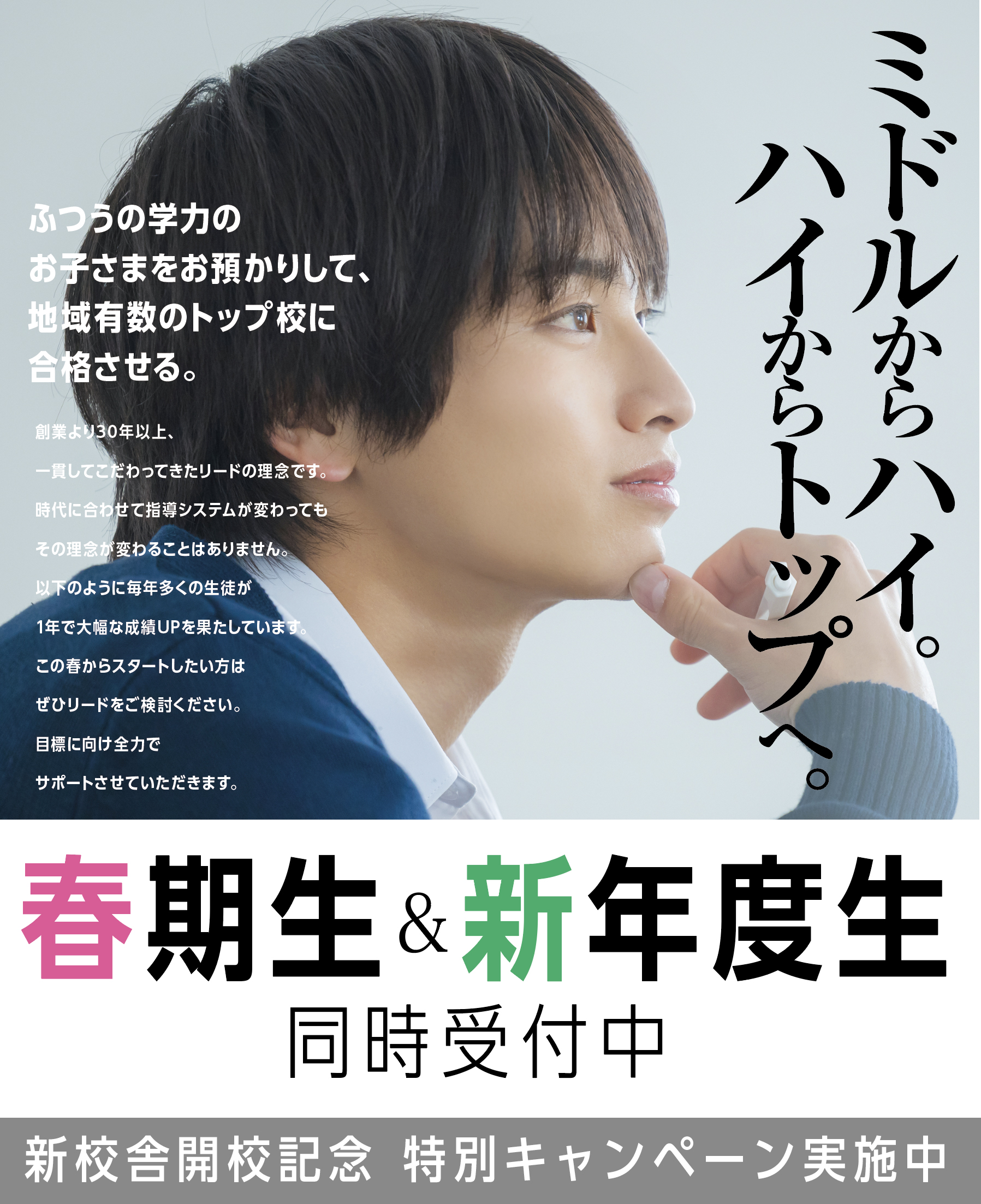 リード進学塾は幼・小・中・高一貫教育で子どもたちの輝かしい未来を応援します。 HOME 幼・小学部 中学部 高等部 合格実績 小中学部ブログ 高等部ブログ 校舎案内 受験情報 最新情報 HOME 幼・小学部 中学部 高等部 合格実績 小中学部ブログ 高等部ブログ 校舎案内 受験情報 HOME > 最新情報 > 2026年 新年度生&春期講習生 受付中 2026年 新年度生&春期講習生 受付中 前へ 次へ 一覧へ 前へ 次へ 一覧へ 詳しく知りたい方はコチラから! リード進学塾/予備校について リード進学塾/予備校 資料請求について リード進学塾/予備校 体験授業について リード進学塾/予備校 お問い合わせについて
