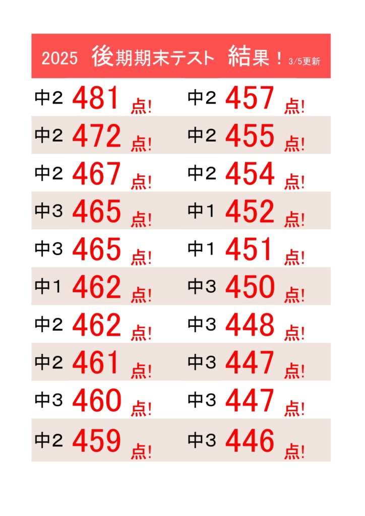 【成績】2025後期期末テスト結果!