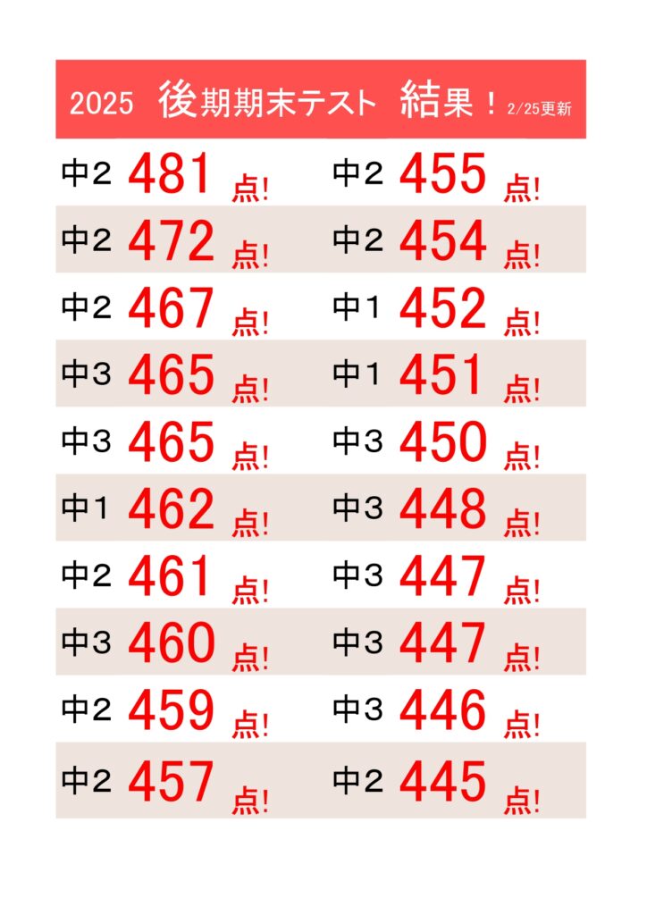 【成績】2025後期期末テスト結果!