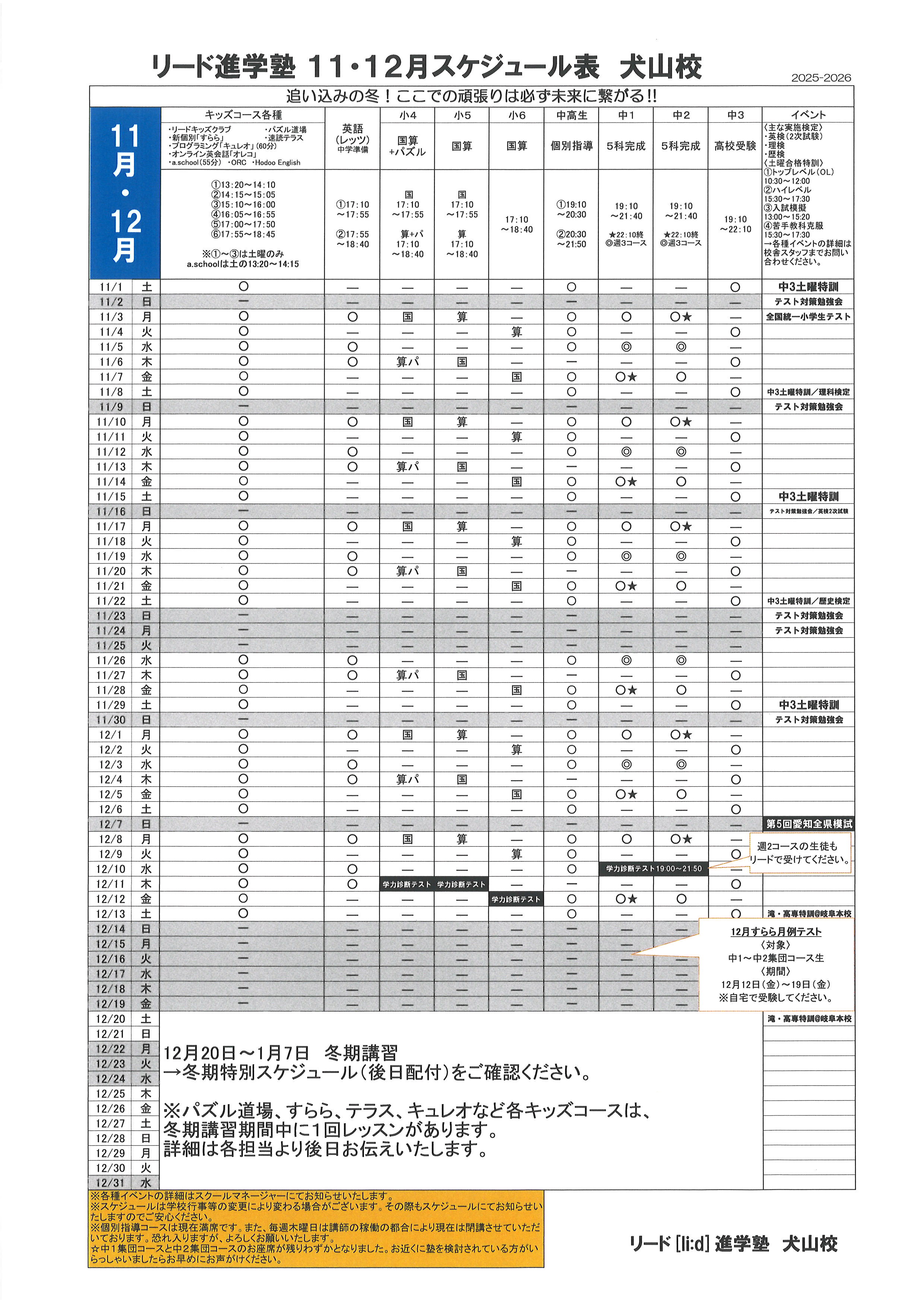 11月入塾を検討いただいている皆さんへ、今後のスケジュールのご案内をいたします。