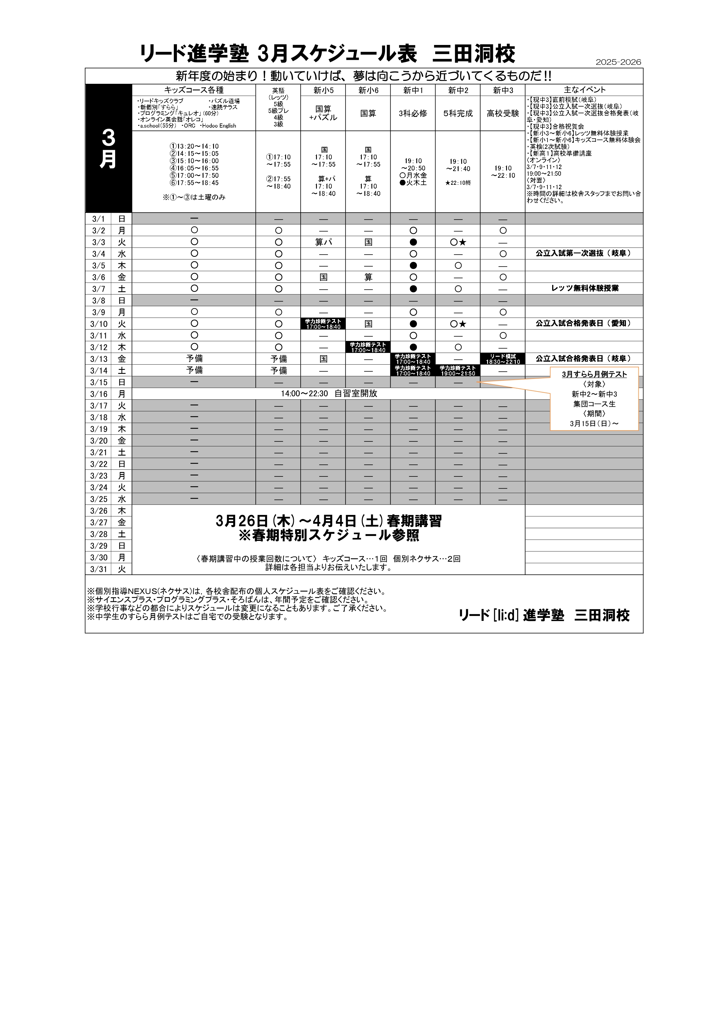 三田洞校舎スケジュール