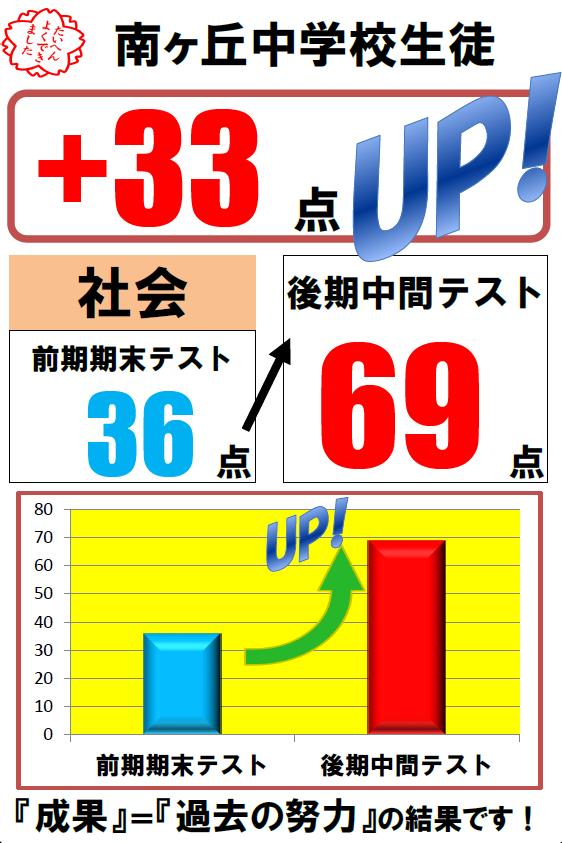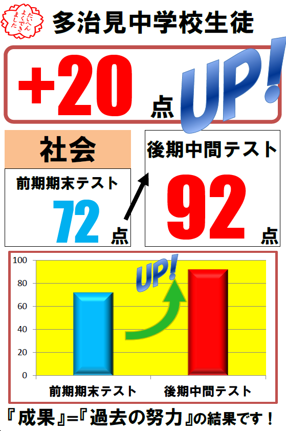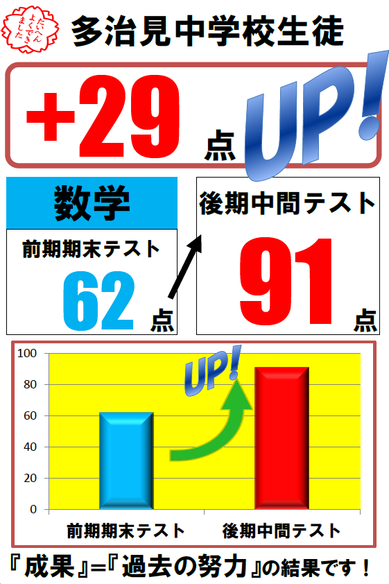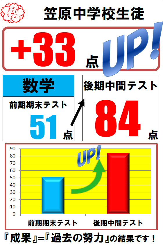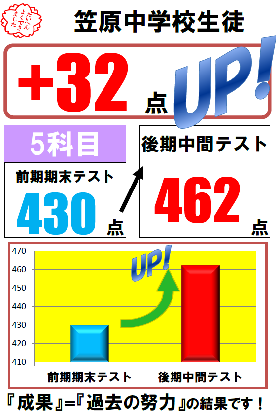 今回も京町校の多くの生徒が大幅な点数UPを達成しました!!!