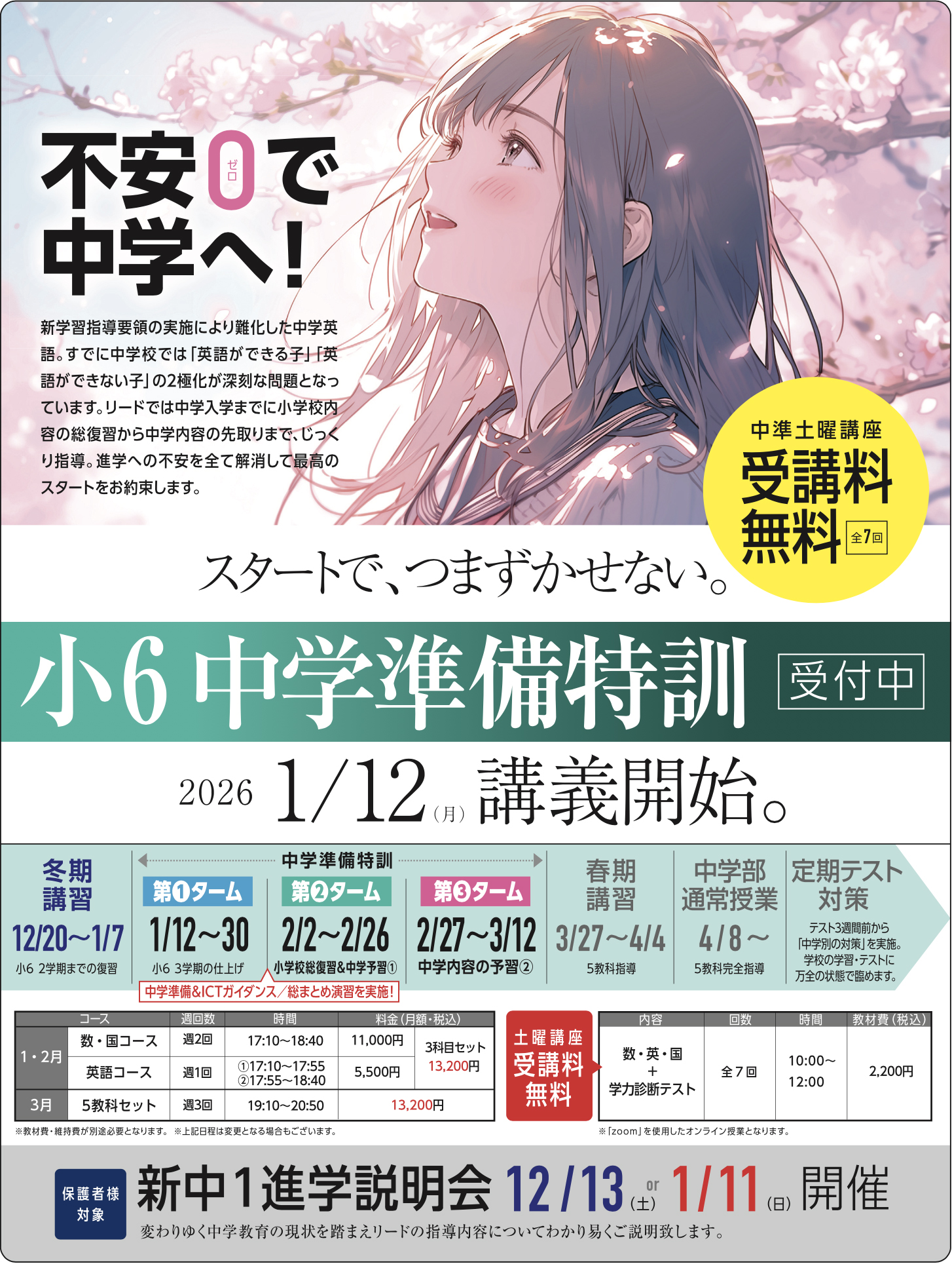 リード進学塾北方校はトップ・ハイレベル層は勿論のこと、 ミドルレベル層の成績向上にも自信があります!!