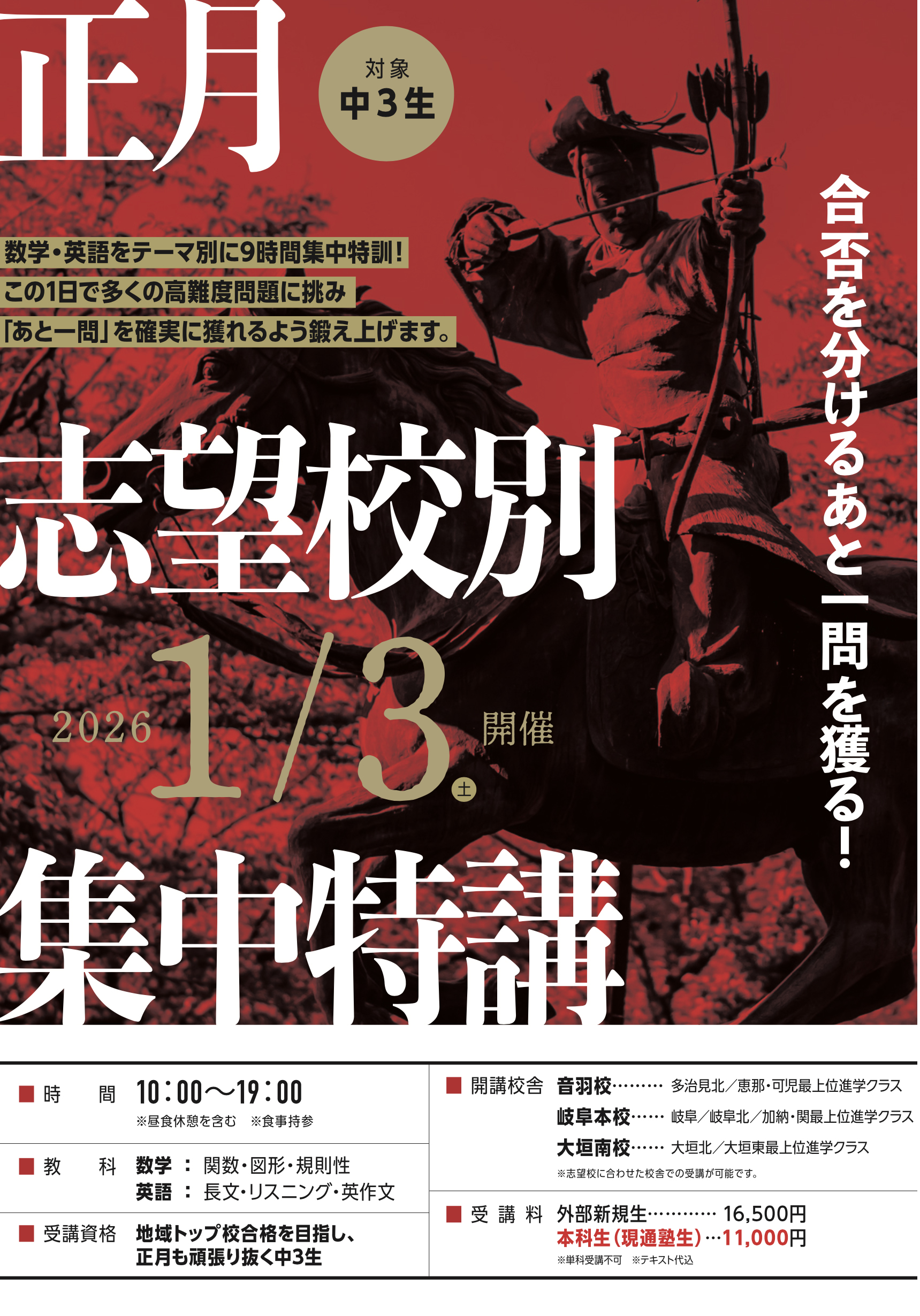 毎年、小6~中3クラスは、冬期講習で多くの新規の方が来られます。