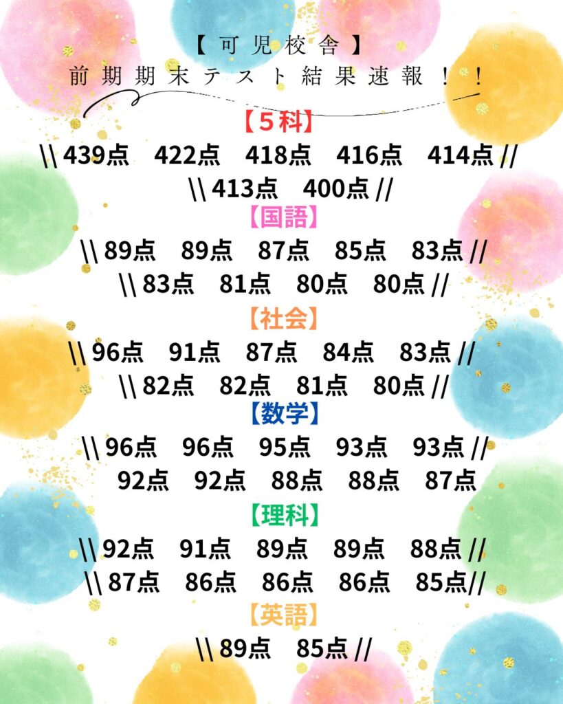 テスト前に頑張った成果が十分に発揮できましたね!!