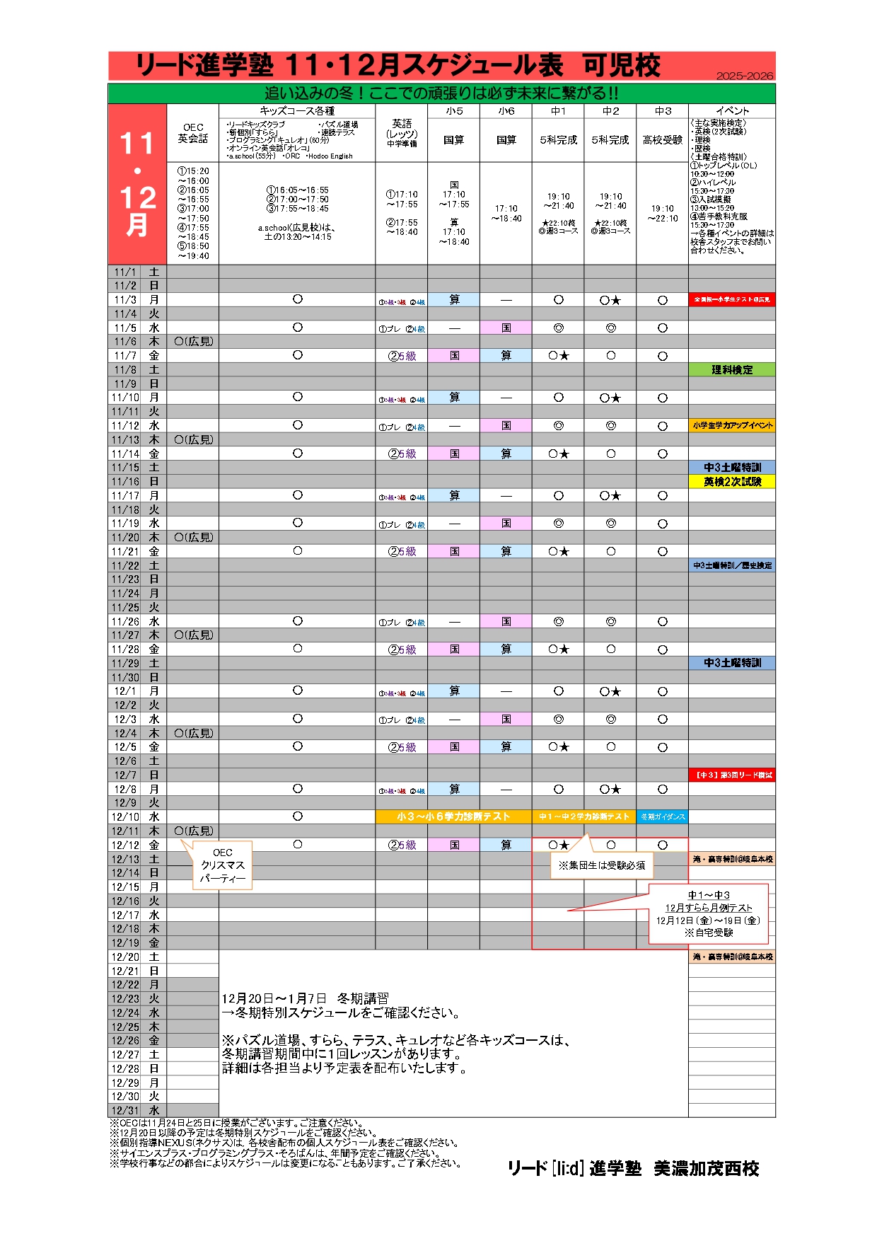 可児校舎の9・10月のスケジュールです。 お電話☏0574-63-5222