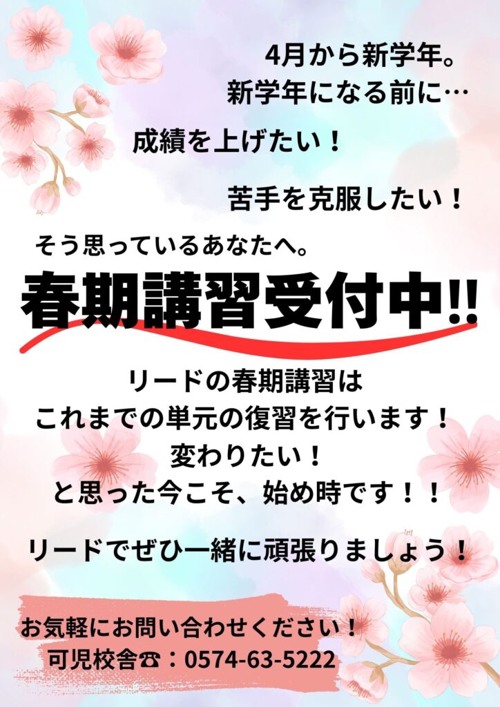 春期講習生 募集中です!