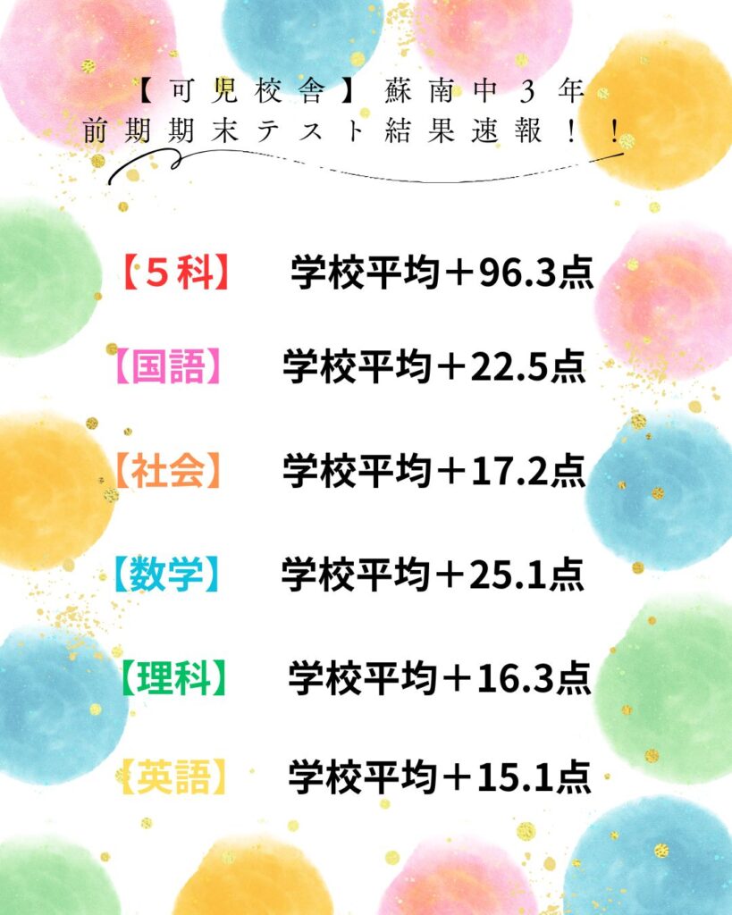 蘇南中3年、集団生の定期テストの学校平均差です!