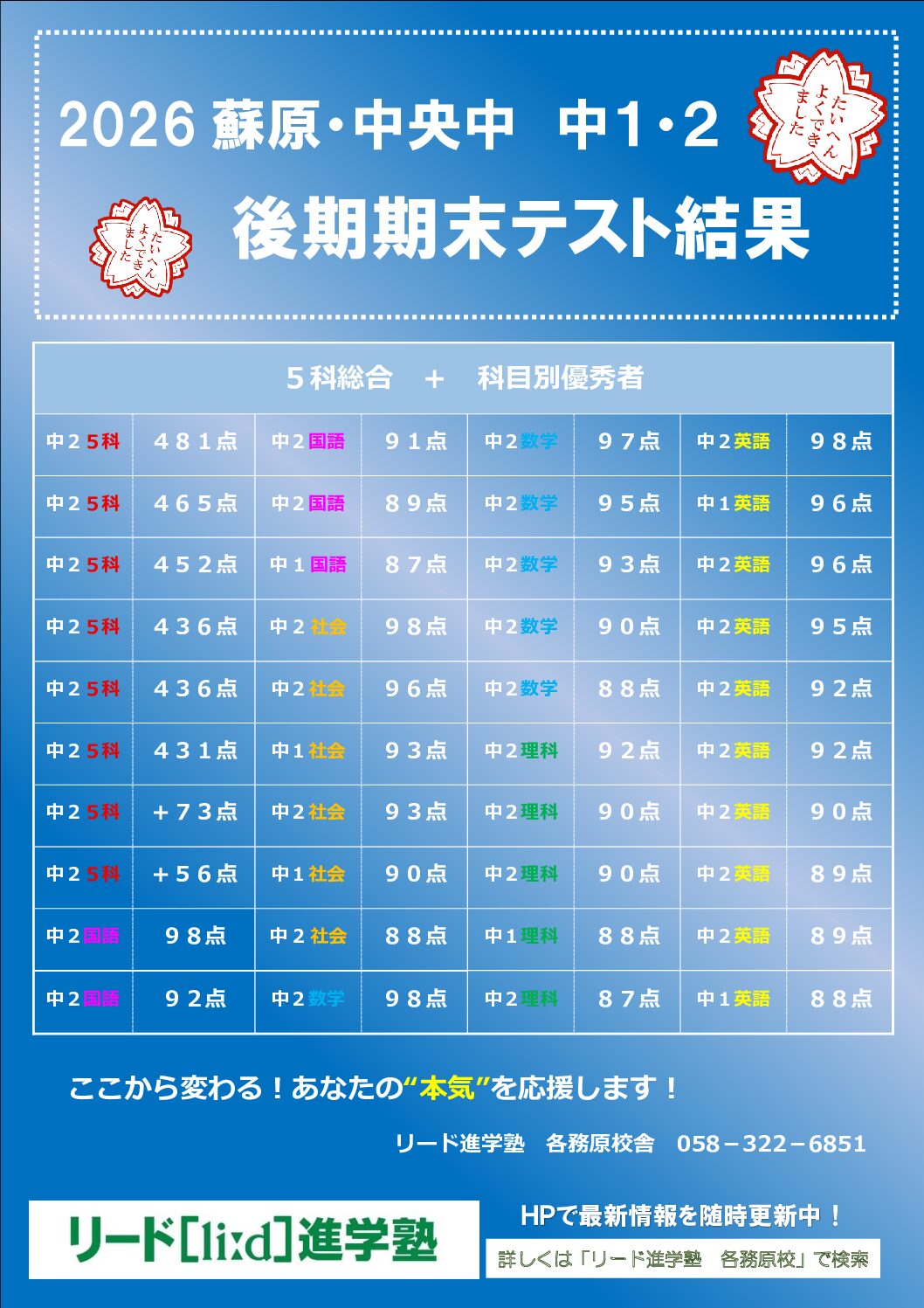 今年も1年間、よくがんばってくれました! そして、お疲れ様でした! リードには切磋琢磨しながら成長することができる仲間が集まっています。 リードだからできる、リードでしかできない受験対策があります。 受験を迎える皆様、リードで共に頑張っていきませんか? ぜひ一度お問い合わせください!