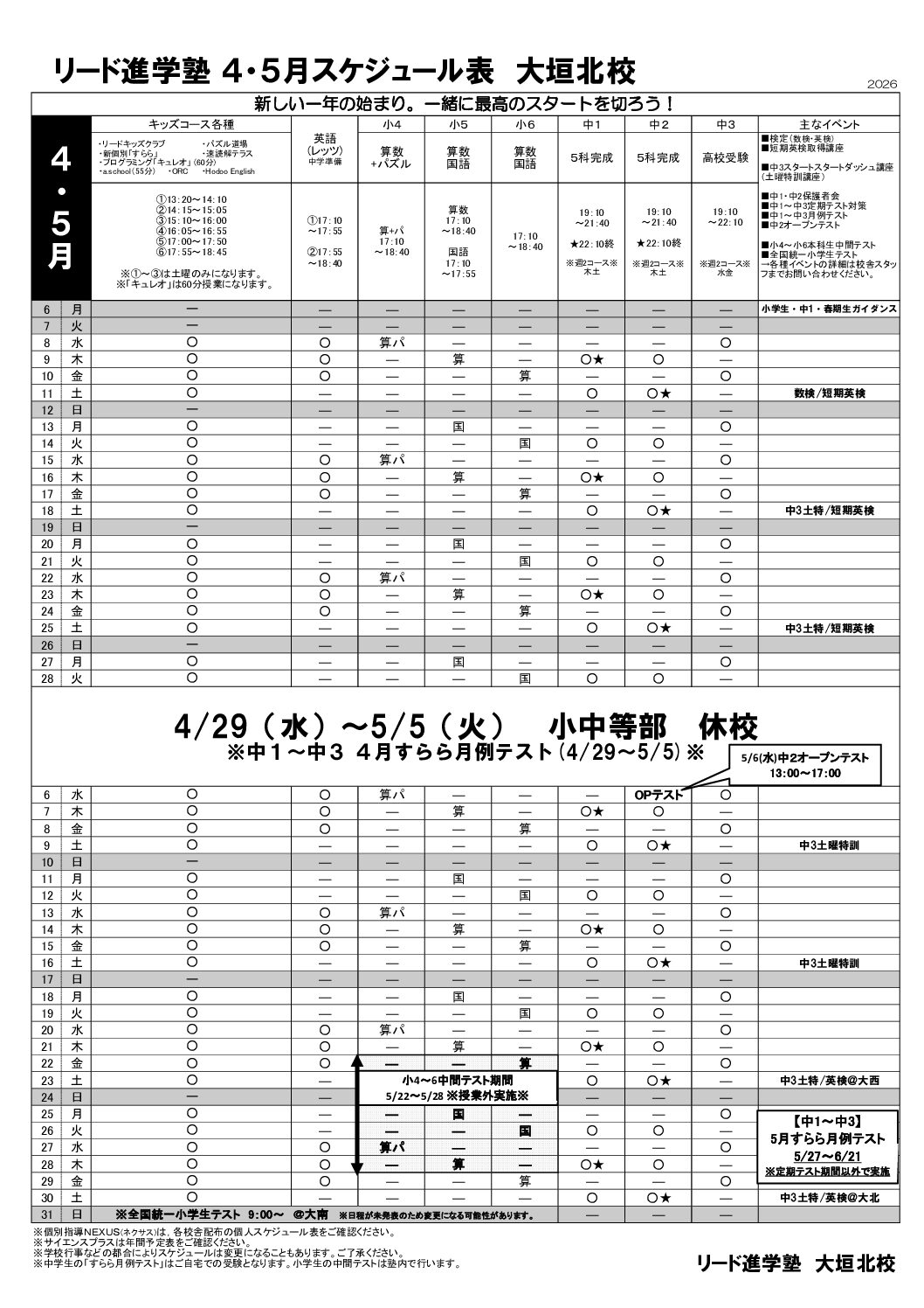 2026 中1・2実力テスト結果