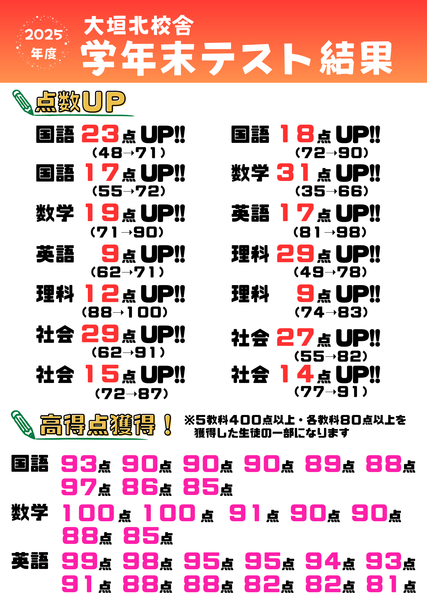 ★大垣北校舎 定期テスト結果★