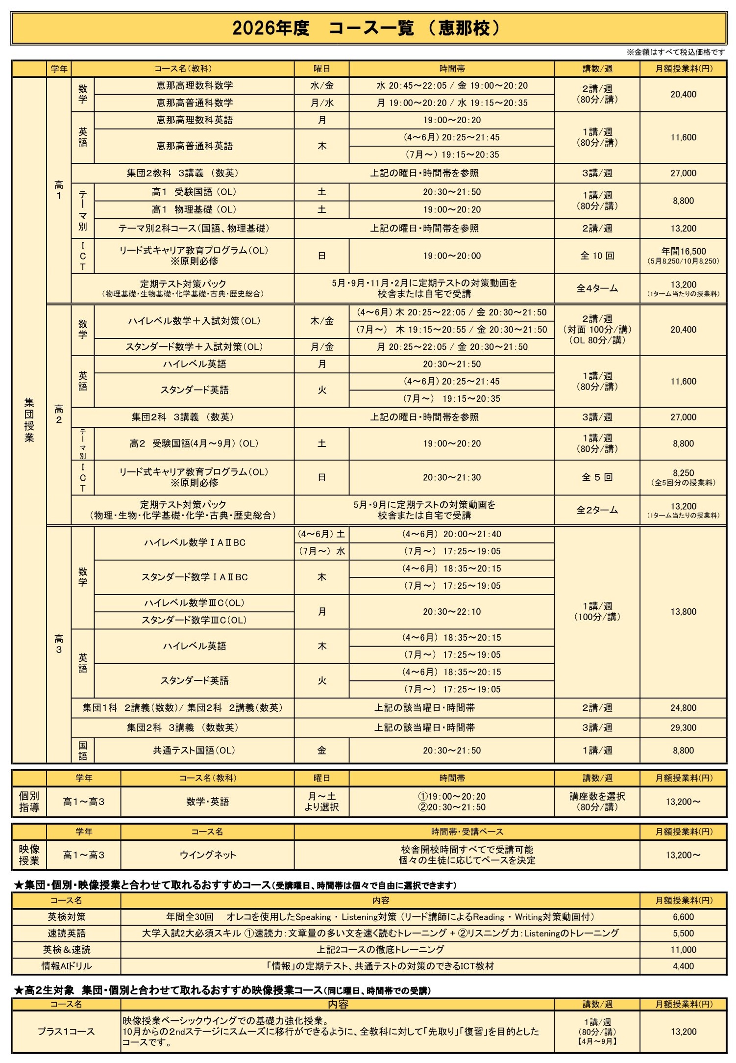 恵那高校の学校の進度にあわせたカリキュラムです。