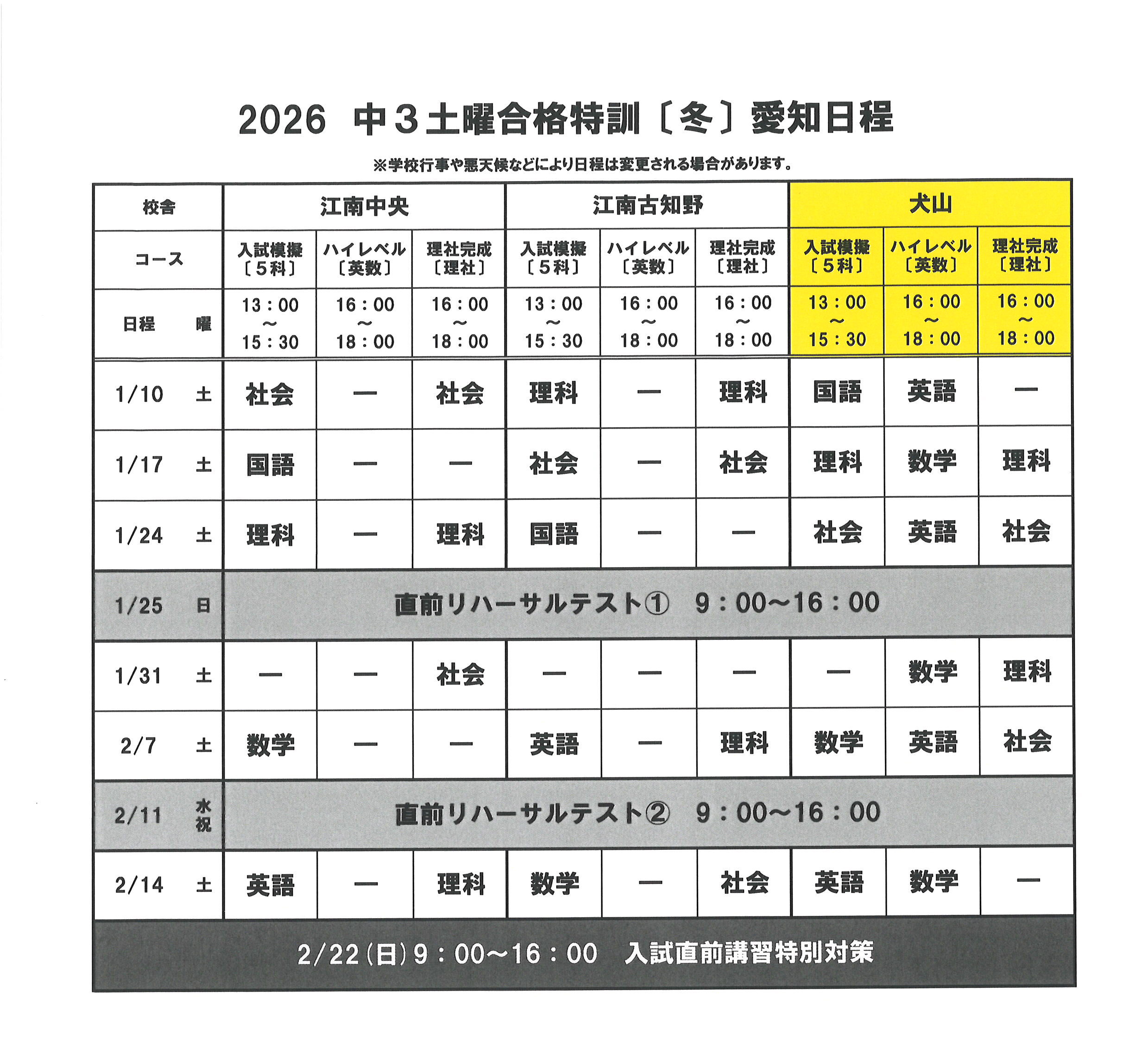 | 校舎名 | :犬山校 |