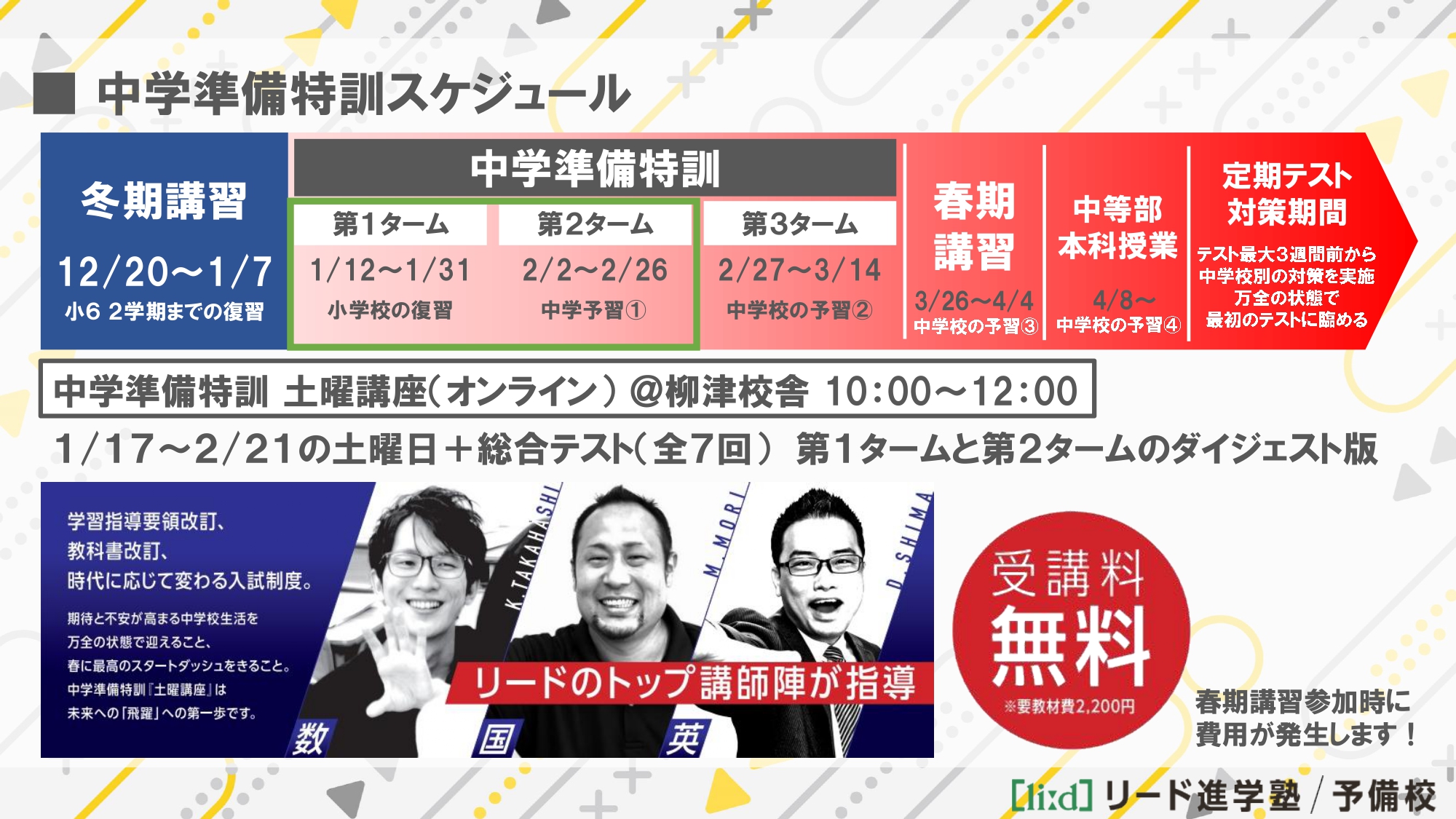 ※中1生の集団コースは只今満席です。新年度【2月25日(水)】の授業からご参加いただけますので、詳しくはお問い合わせください。