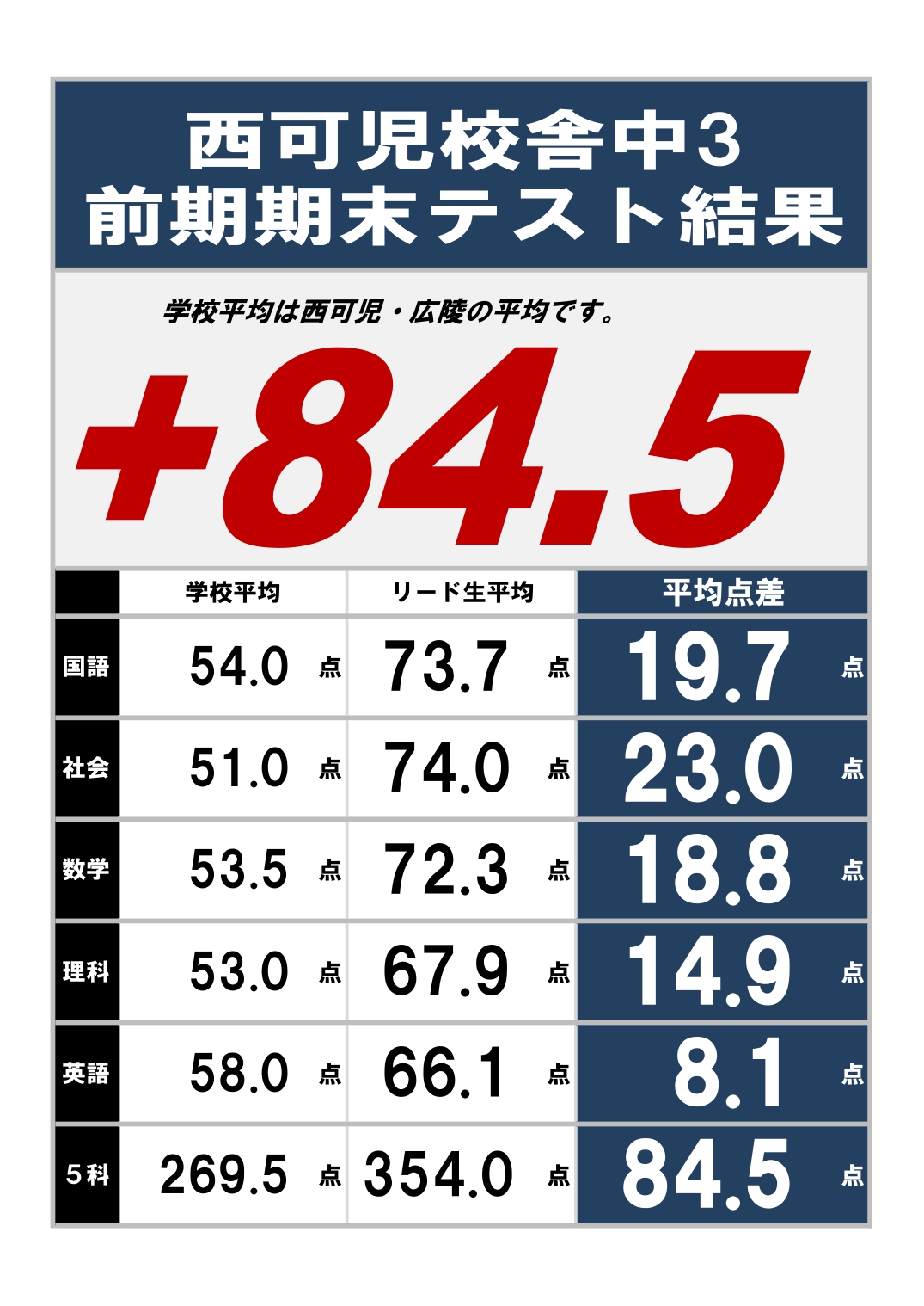 中学2年生(広陵中・西可児中) 6月の実力テスト結果