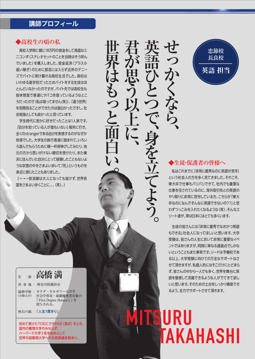英語担当 高橋満 カルガリー大学 TOEIC FULL SCORE