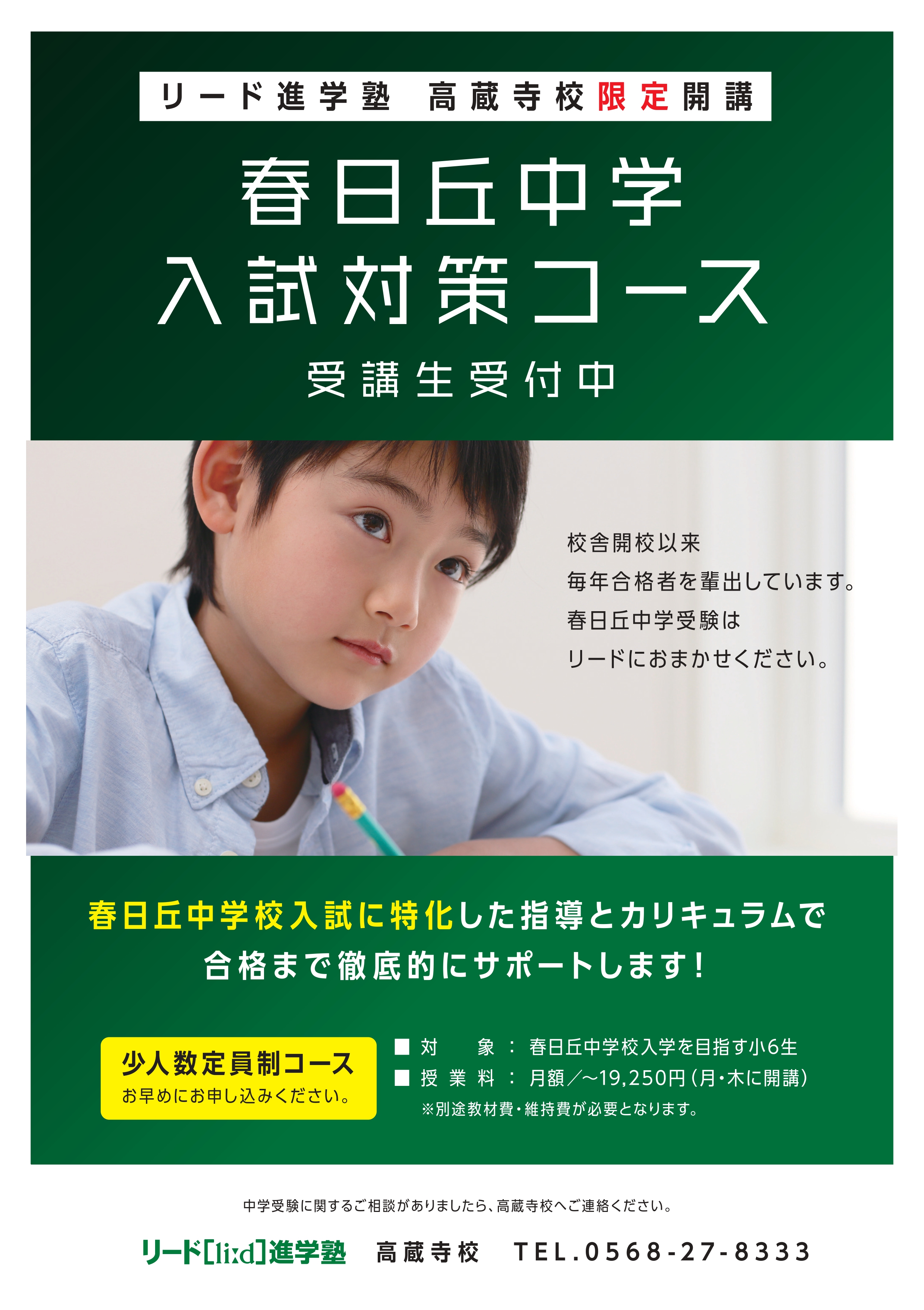高蔵寺校舎 3月8日(日)17:10~18:40