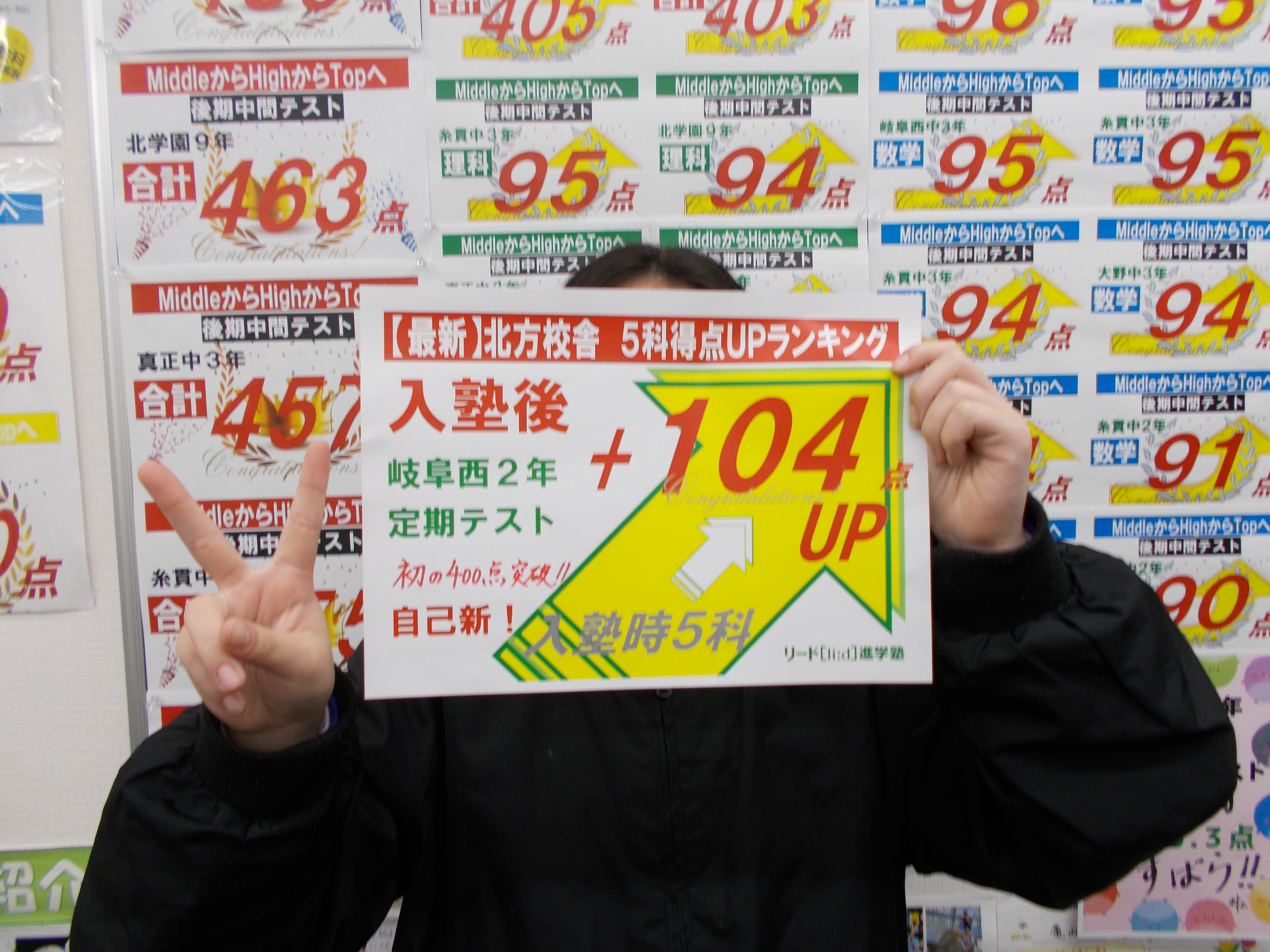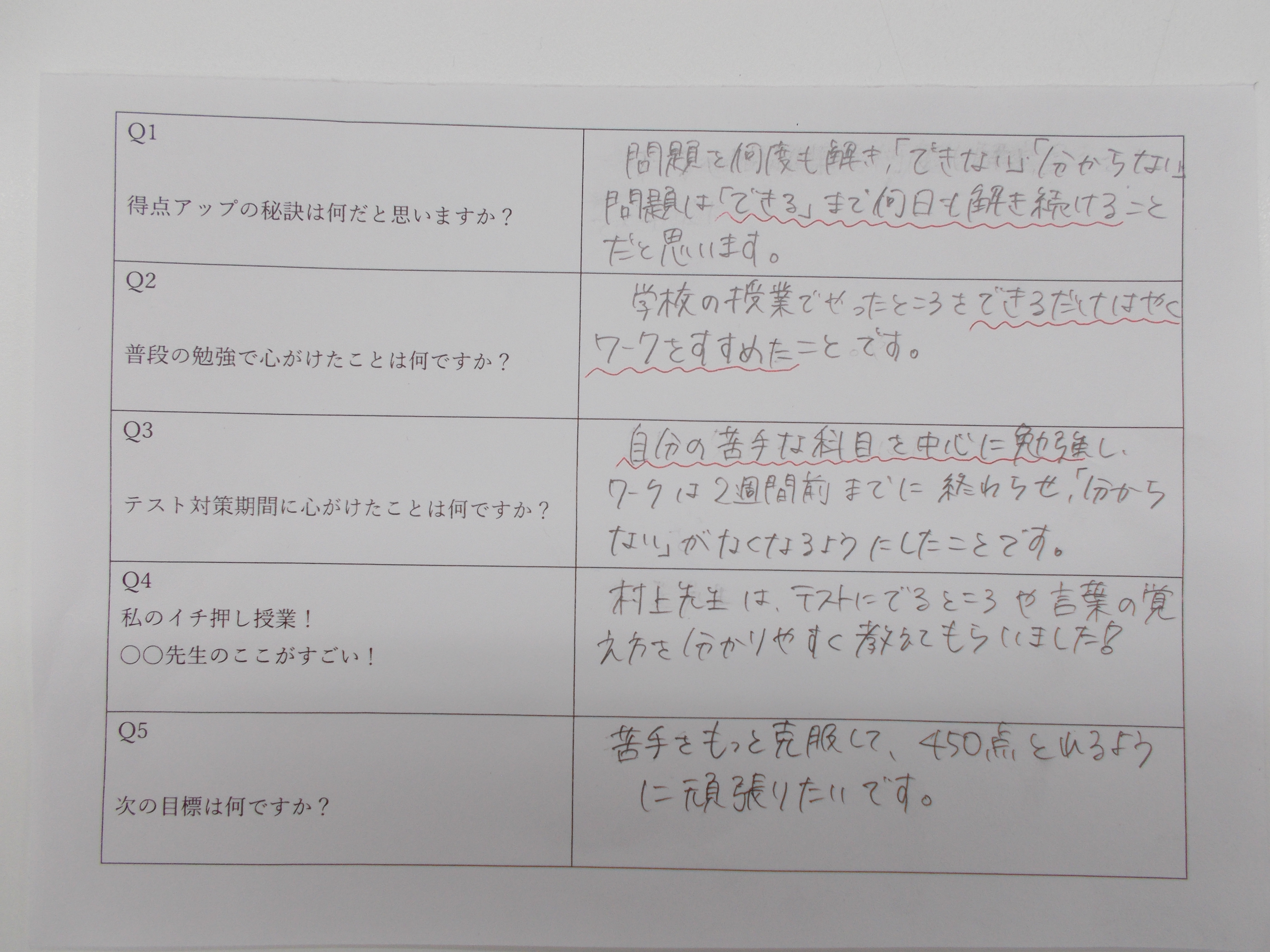 入塾して今回とうとう目標の400点突破!!100点アップは地道な努力あってこそですね👏