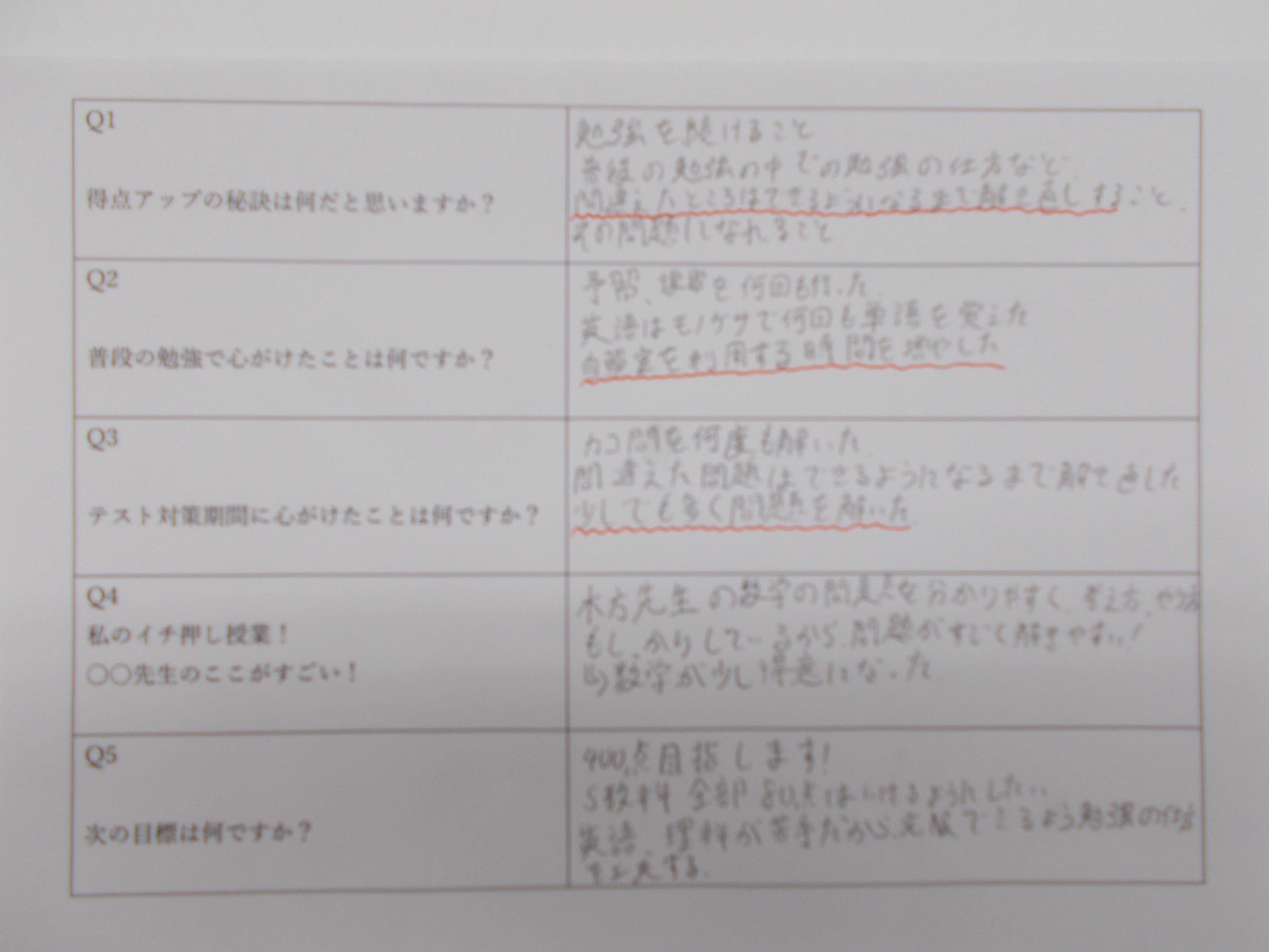 きちんと取り組んでくれた結果、点数が伸びた子も多くいて