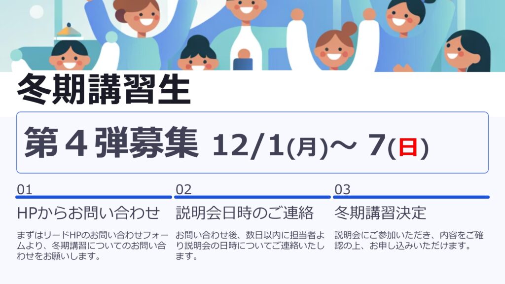 📣 リード進学塾では冬期講習生募集中!