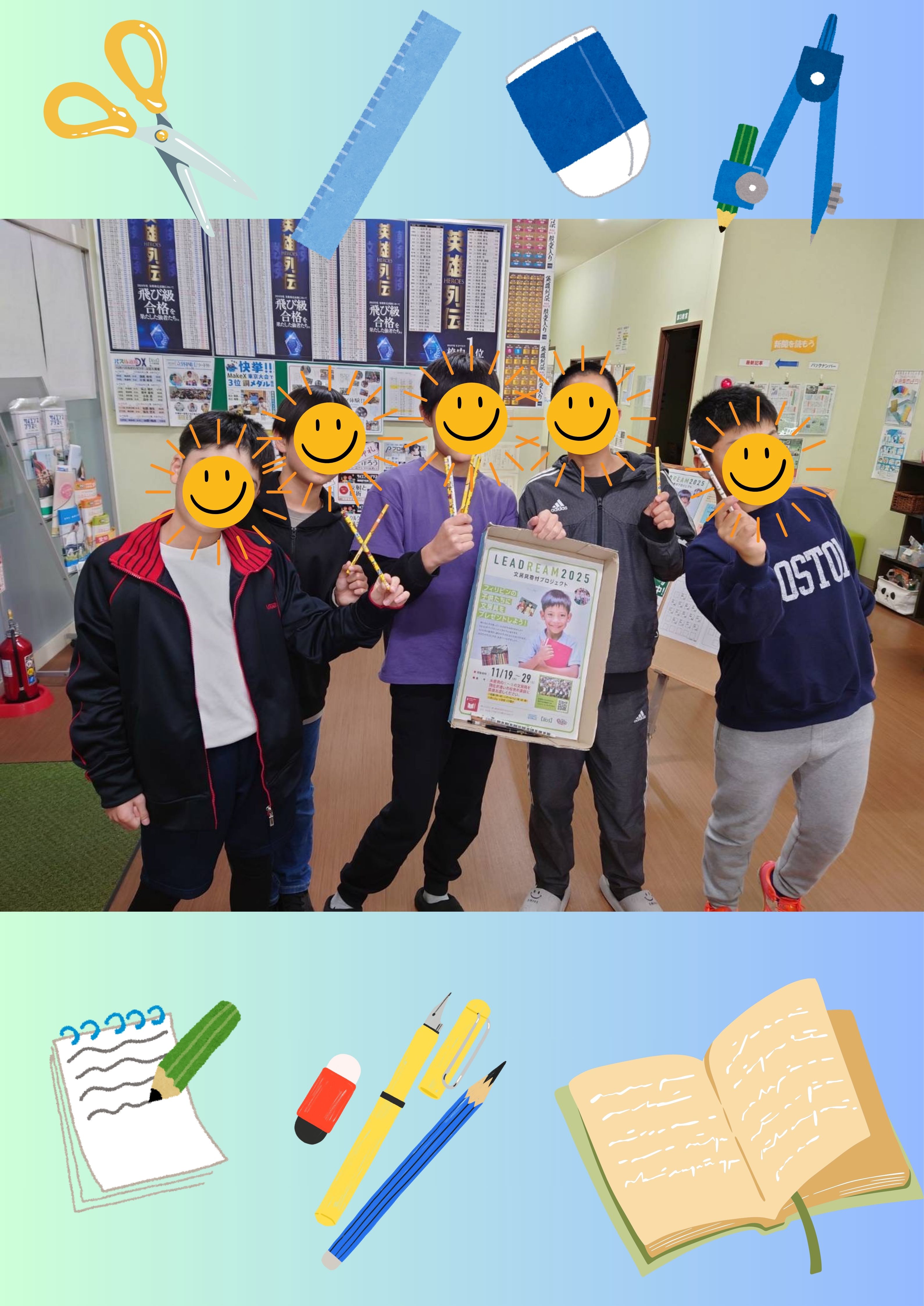 笑顔で回収BOXに文房具を入れてくれました。